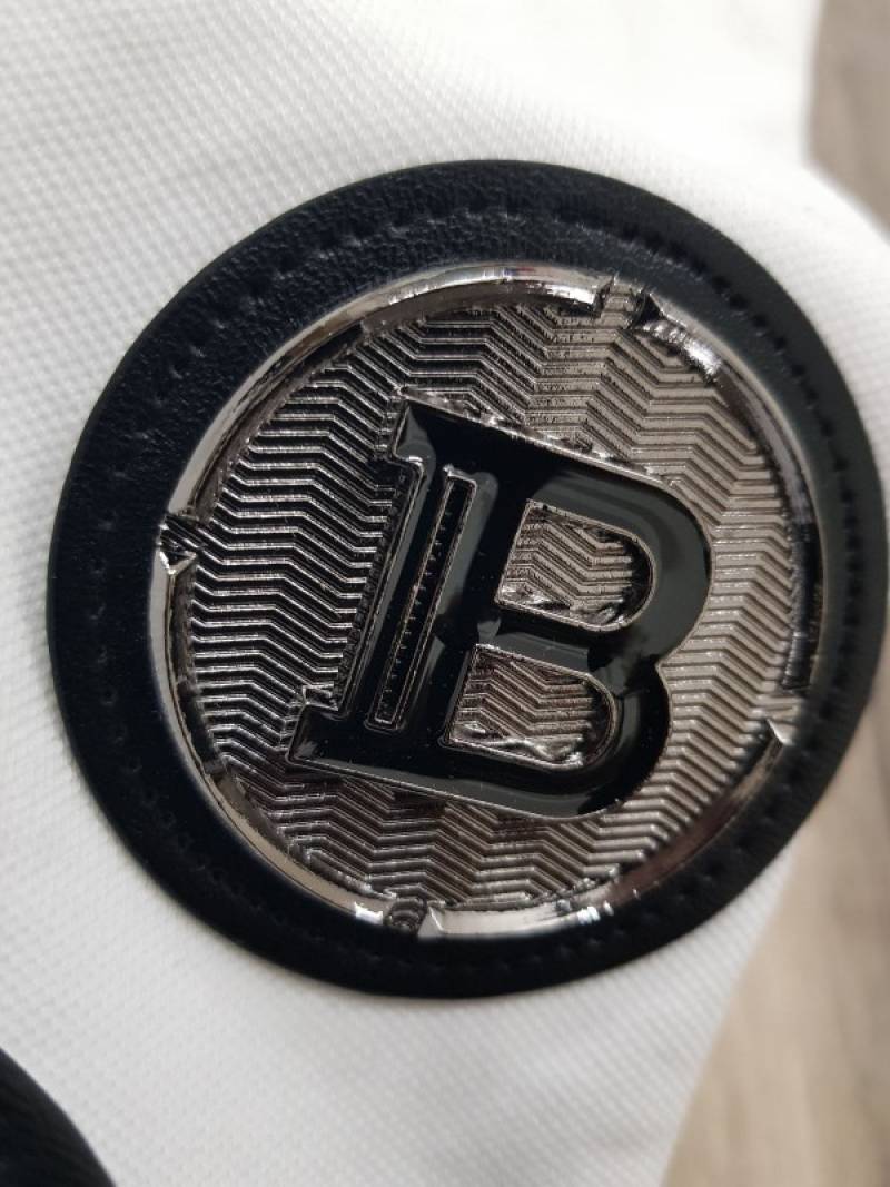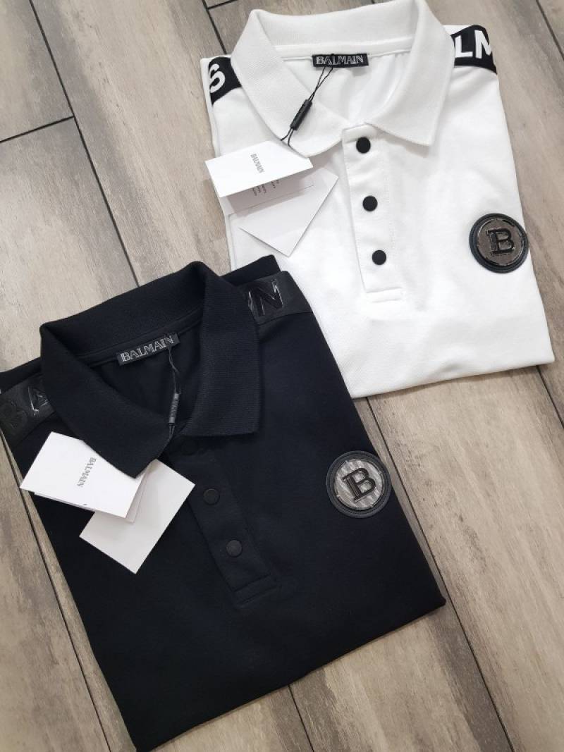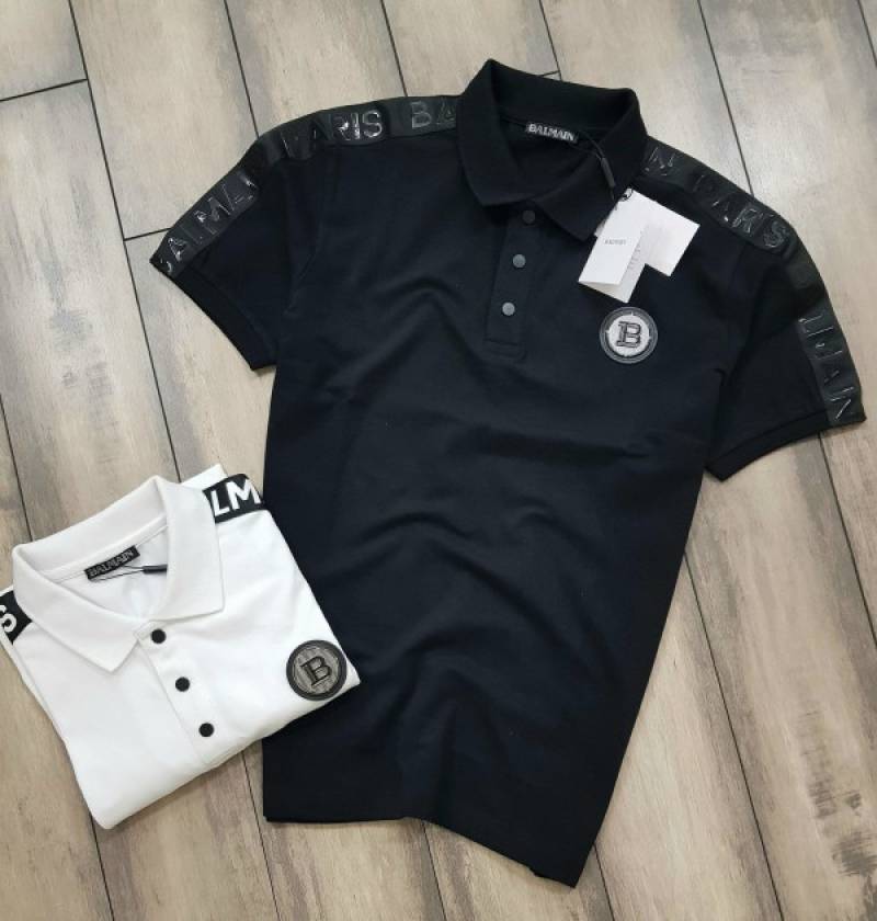 Balmai n Paris Metal Logo Imported Embossed Print Black Collar Neck T-shirt F2832-BL