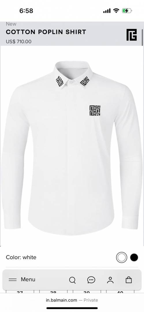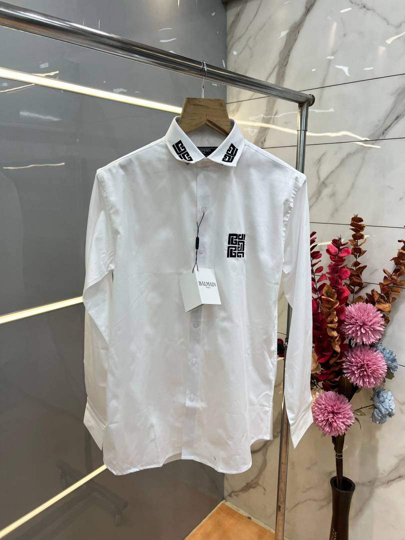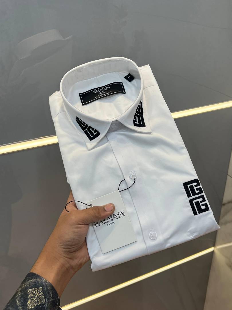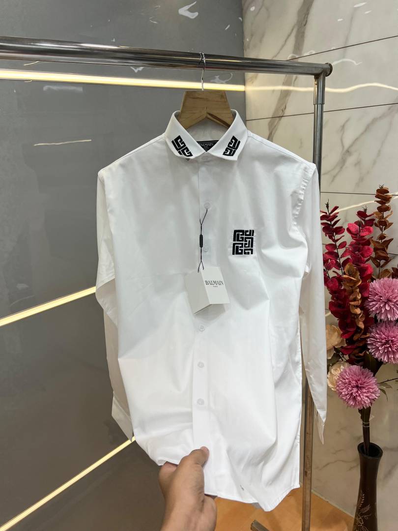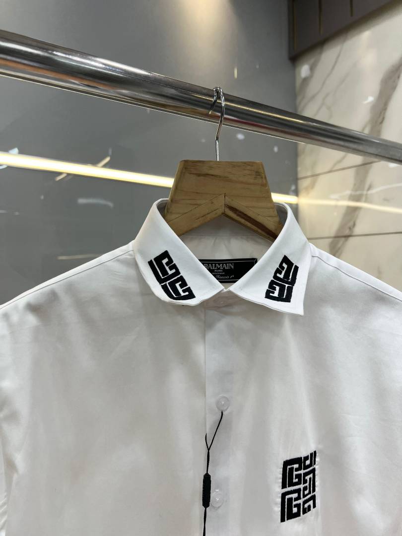 Balmai_n whaite Premium Shirt With Embroidery 3876 Design Imported Cotton Lycra Fabric Brand Box3876