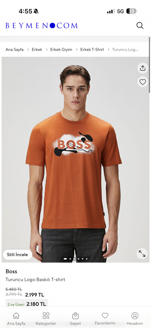 • Boss Middle Brand Print Round Neck T-shirt Orange Brown
