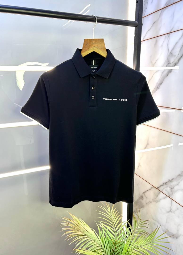 Boss x Porsche Edition Black Collar Neck Premium Polo T-shirt F1829-BL
