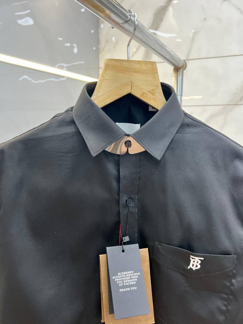 Burberr y Black Premium Embroidered Logo Shirt With custom Branded Button Tagging And Brand Packing 3749
