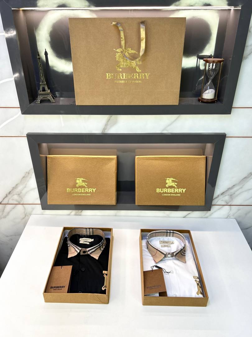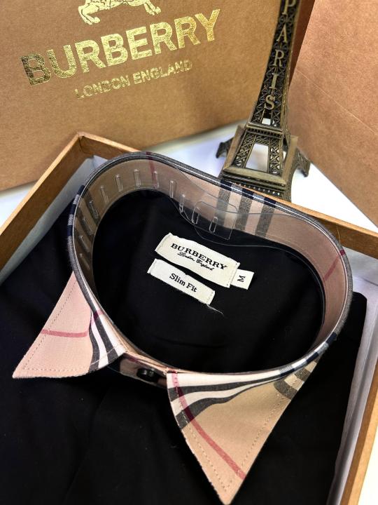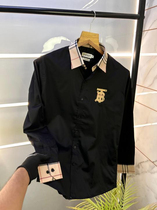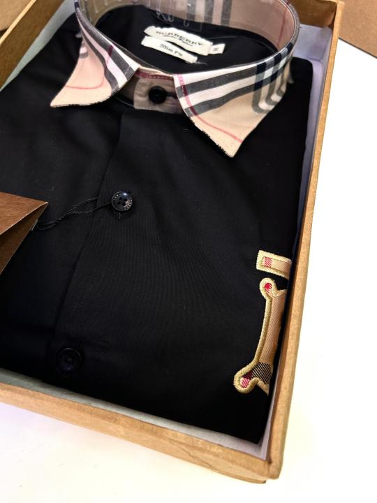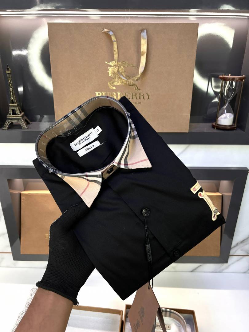 Burberr y Black Premium Embroidery Logo Shirt With Brand Box Packing And Carry Bag F2249-BL