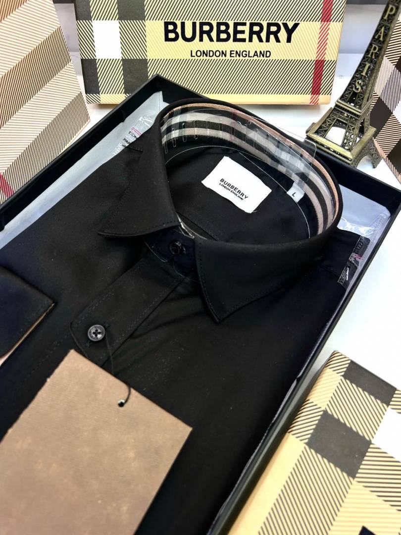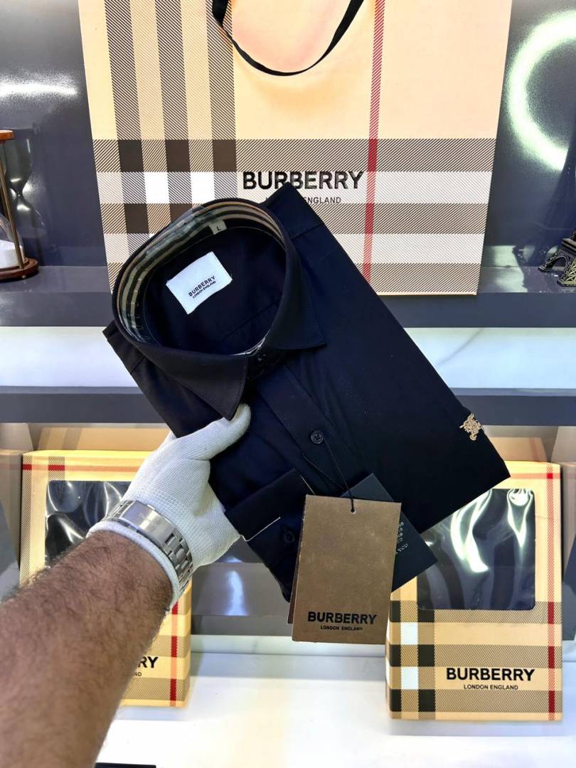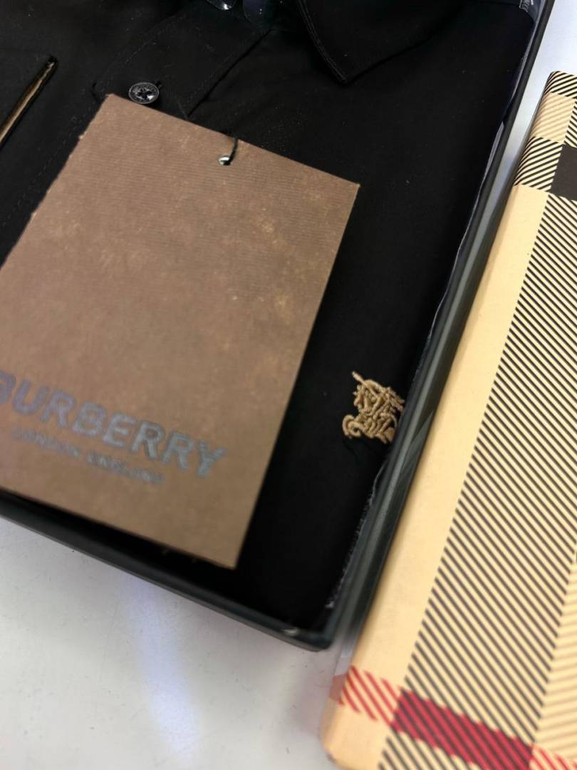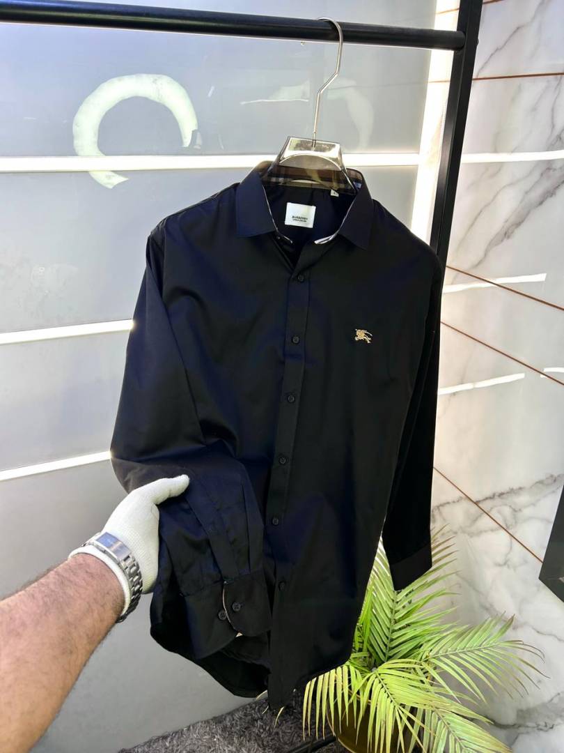 Burberr y Black Premium Embroidery Logo Shirt With Brand Box Packing And Carry Bag F3451-BL