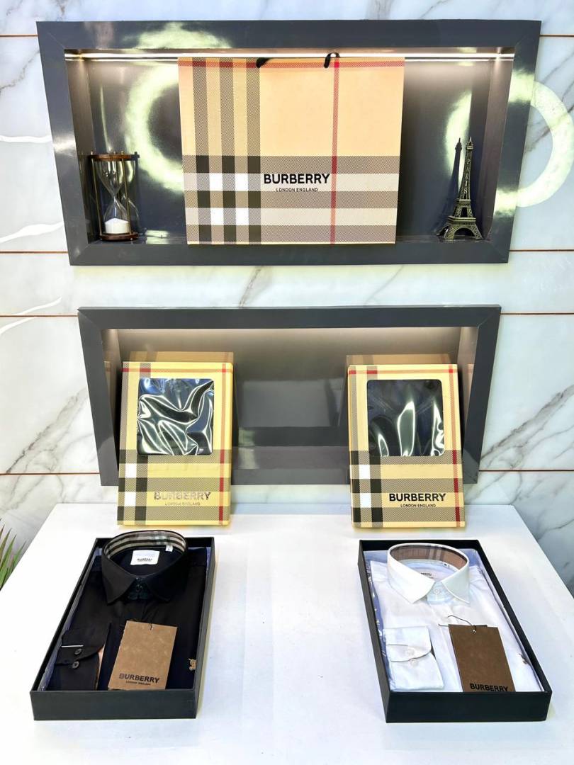 Burberr y White Premium Embroidery Logo Shirt With Brand Box Packing And Carry Bag F3451-WH