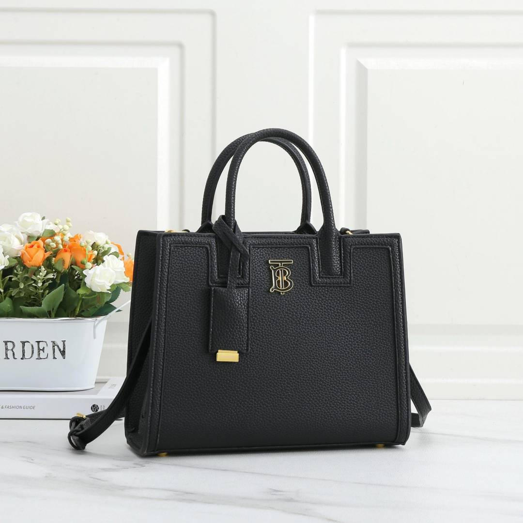 Burberr_y Frances Black Leather Hand Bag With Dust Bag (Black) (V-6602)
