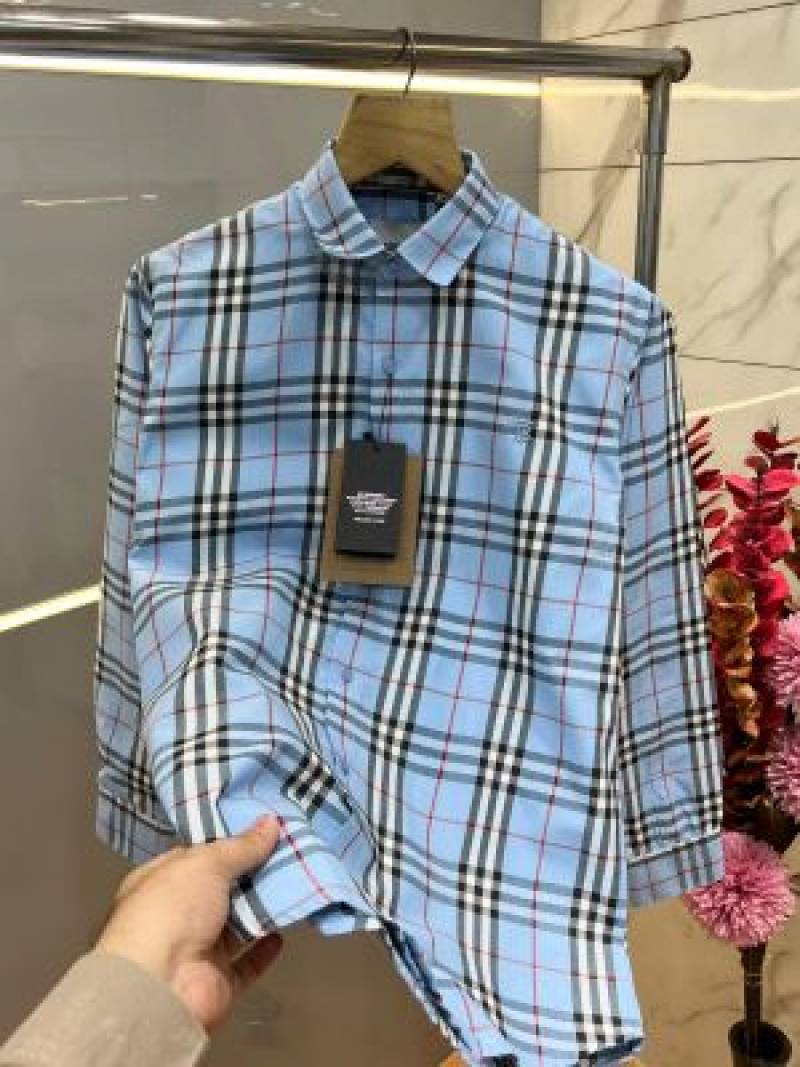 • Burberr y Premium Imported Checks Shirt With custom Branded Button Tagging with Printed Design And Brand Packing 3804