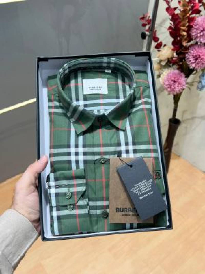 • Burberr y Premium Imported Checks Shirt With custom Branded Button Tagging with Printed Design And Brand Packing 3804