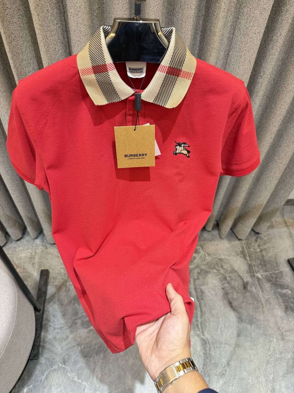 • Burberr y Red Branded Collar Polo Tshirt with Box