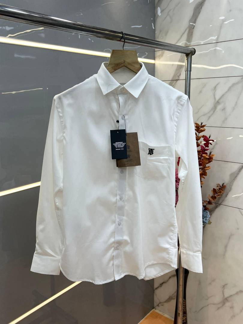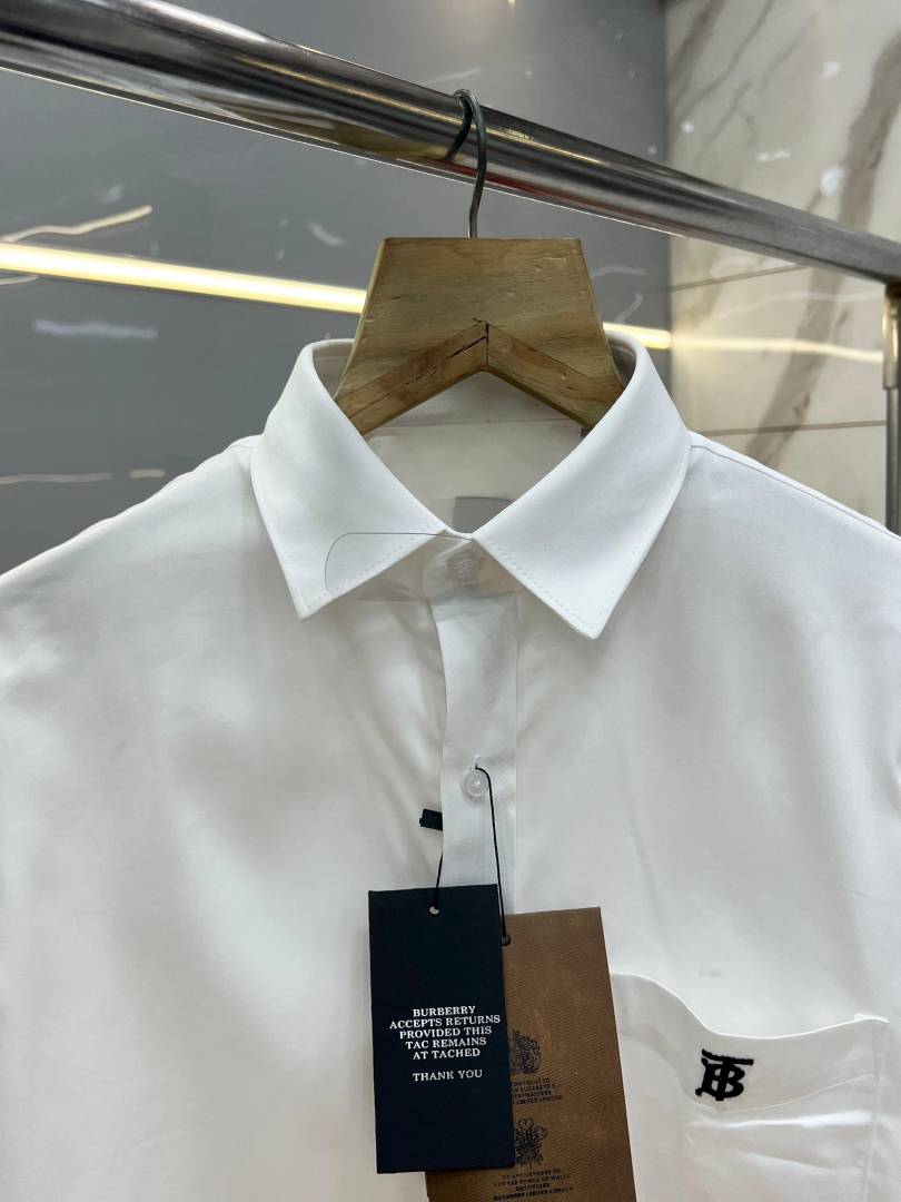 Burberr y White Premium Embroidered Logo Shirt With custom Branded Button Tagging And Brand Packing 3751