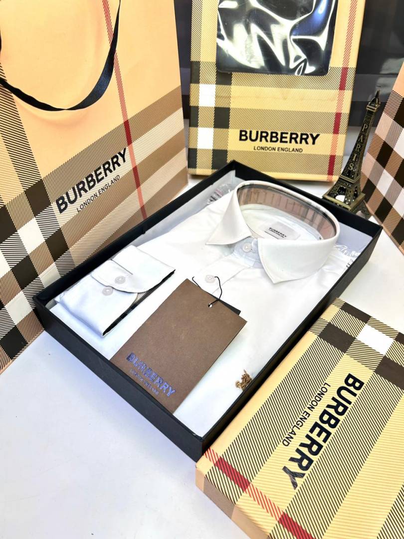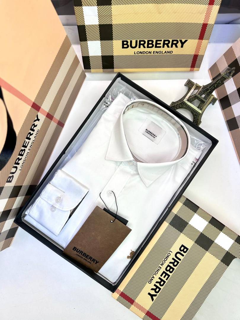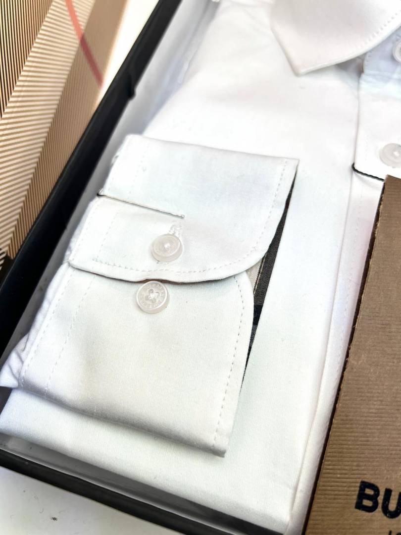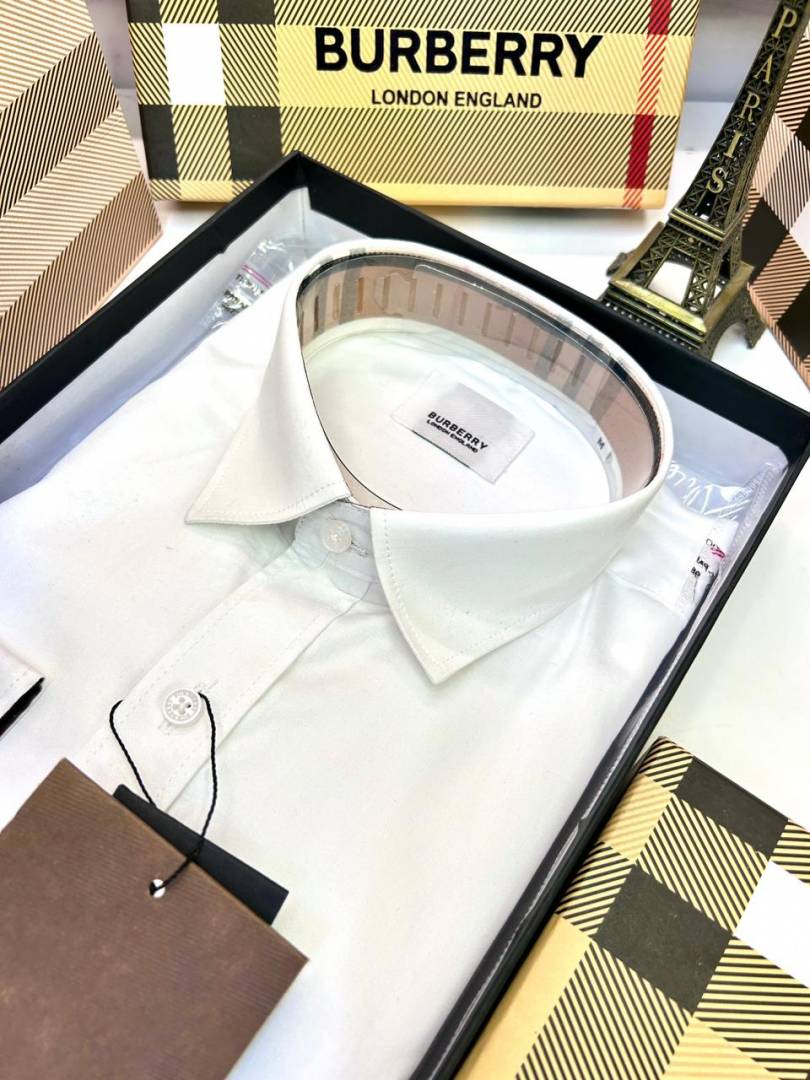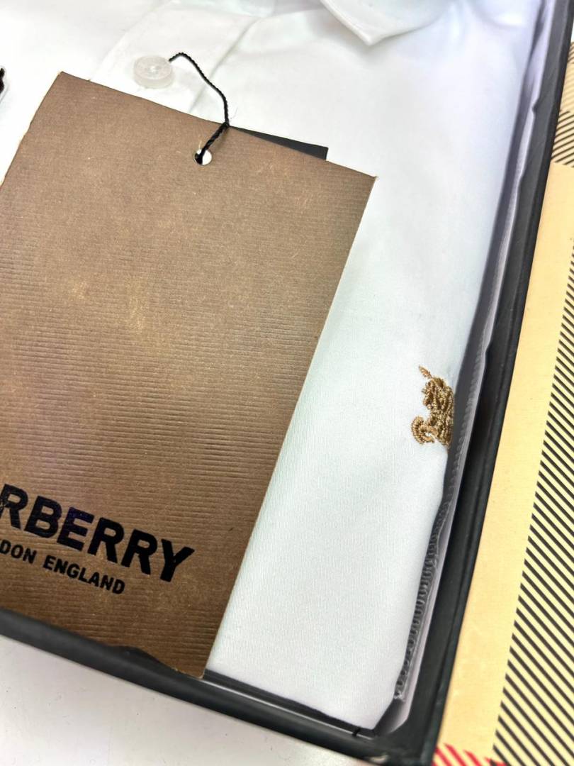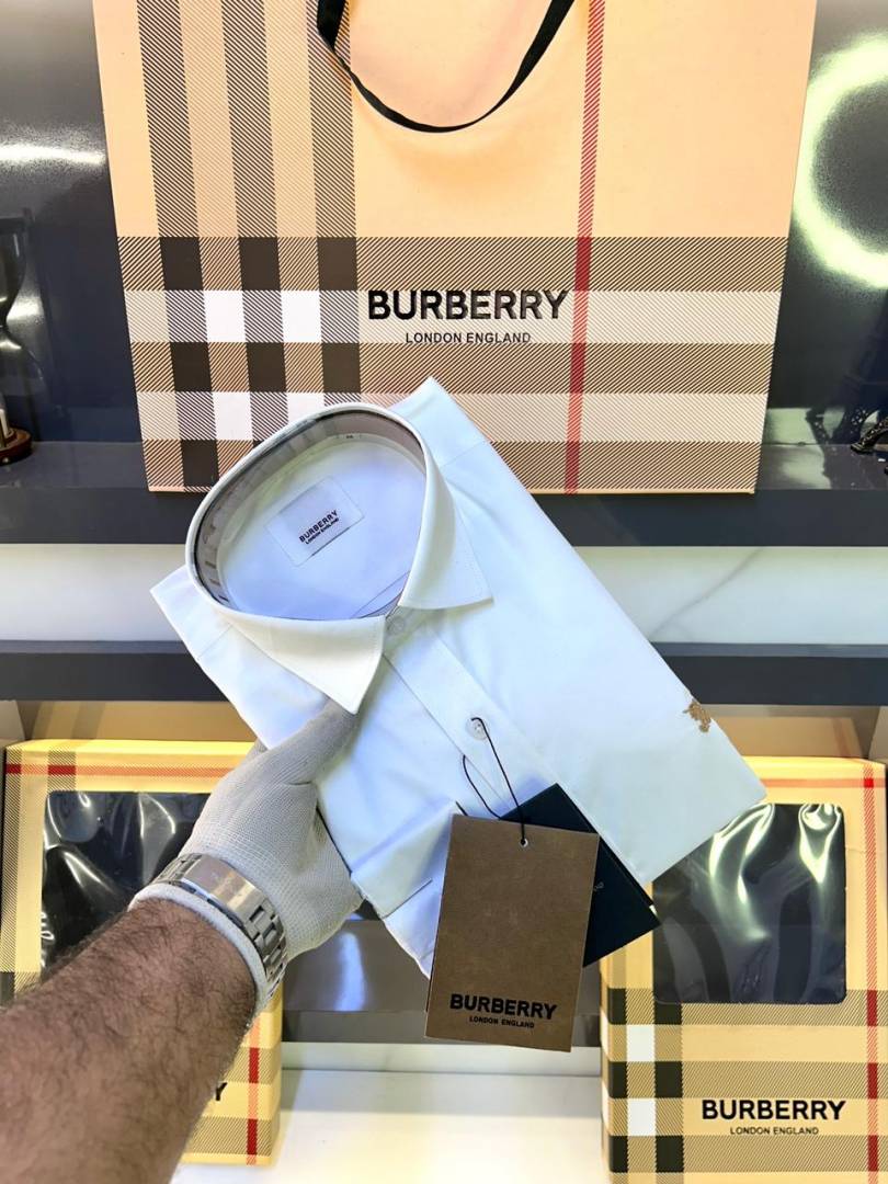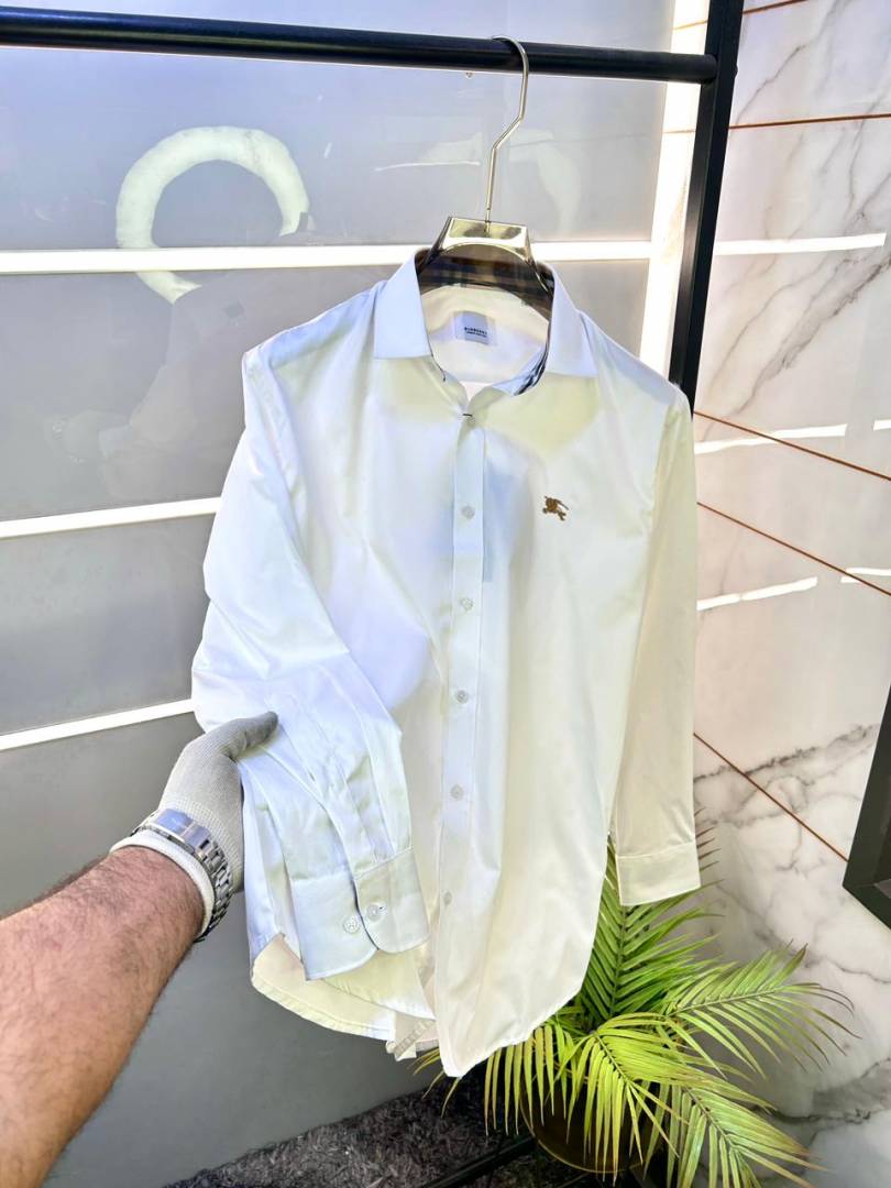 Burberr y White Premium Embroidery Logo Shirt With Brand Box Packing And Carry Bag F3451-WH