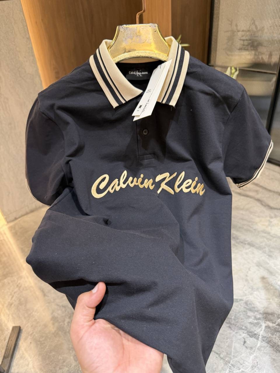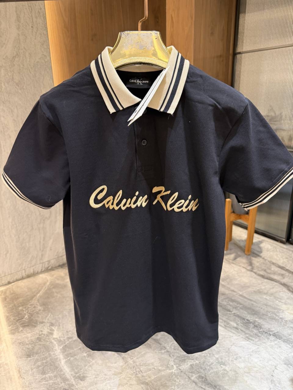 CALVIN KLEI_n BLACK BEIGE EMBROIDERED LOGO POLO TSHIRT STORE ARTICLE