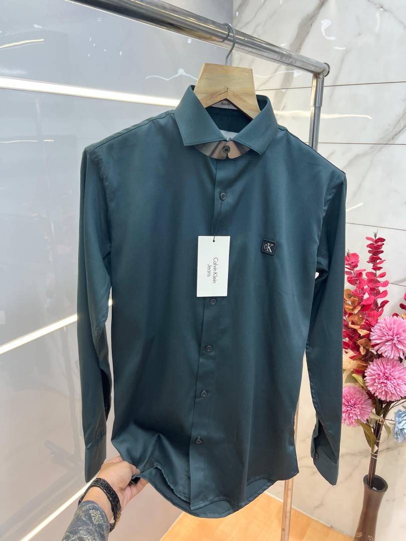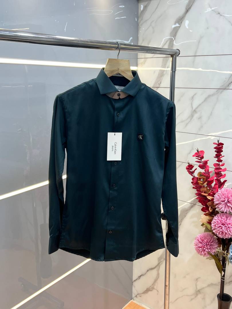 Calvin Klei n Bottle Green Premium Imported Patch Logo Shirt with custom Branded Button Tagging And Brand Box 3727