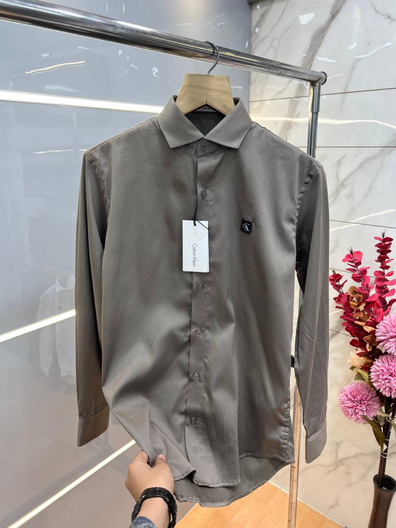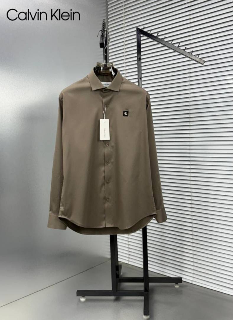 Calvin Klei n Brown Premium Imported Patch Logo Shirt with custom Branded Button Tagging And Brand Box 3724