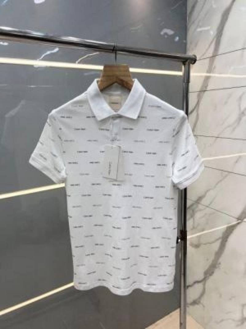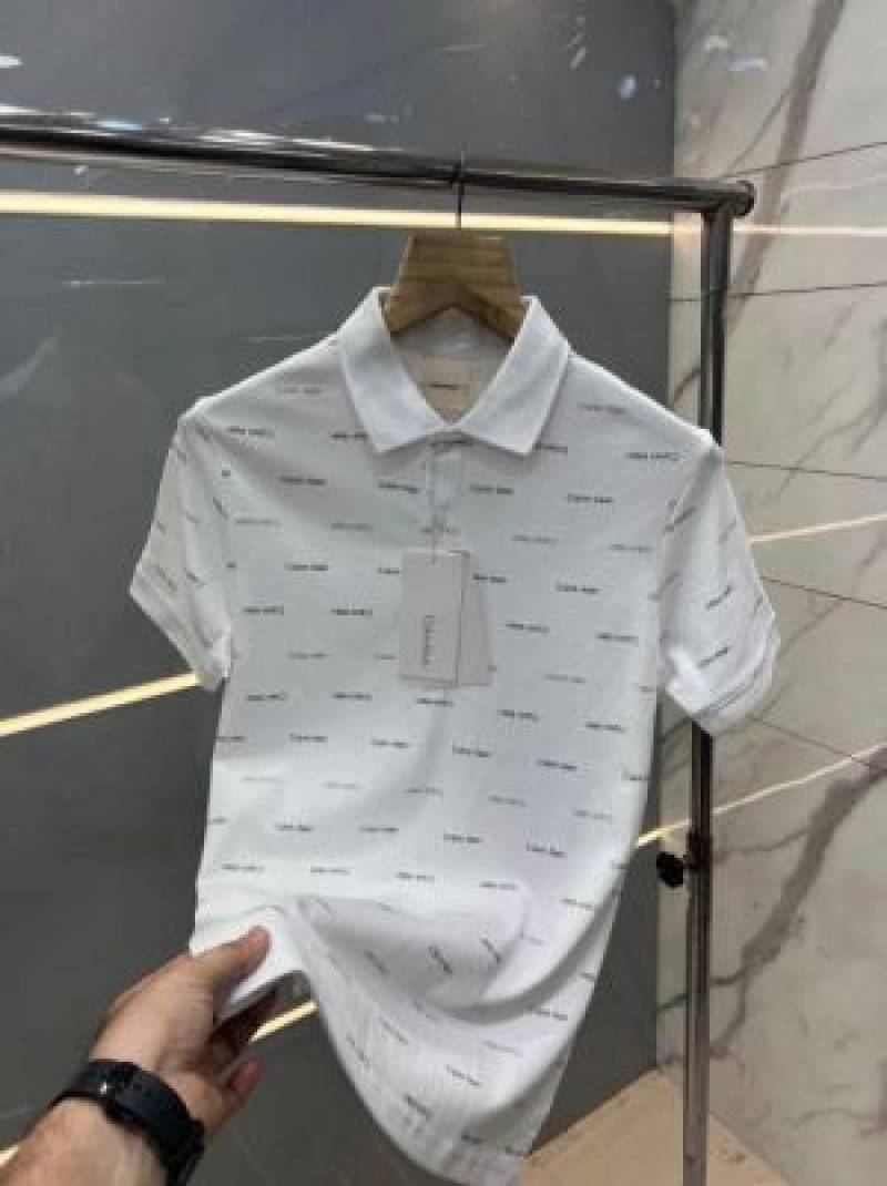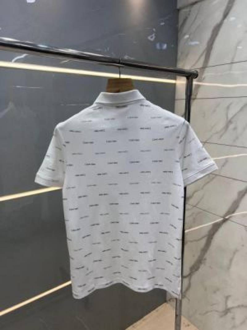 Calvin Klei n White Premium 240gsm interlock cotton lycra fabric Polo Tshirt with All over Monogram Printed 2792