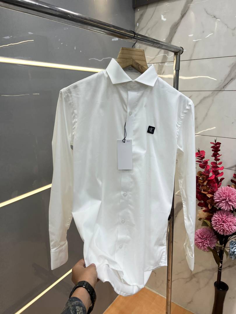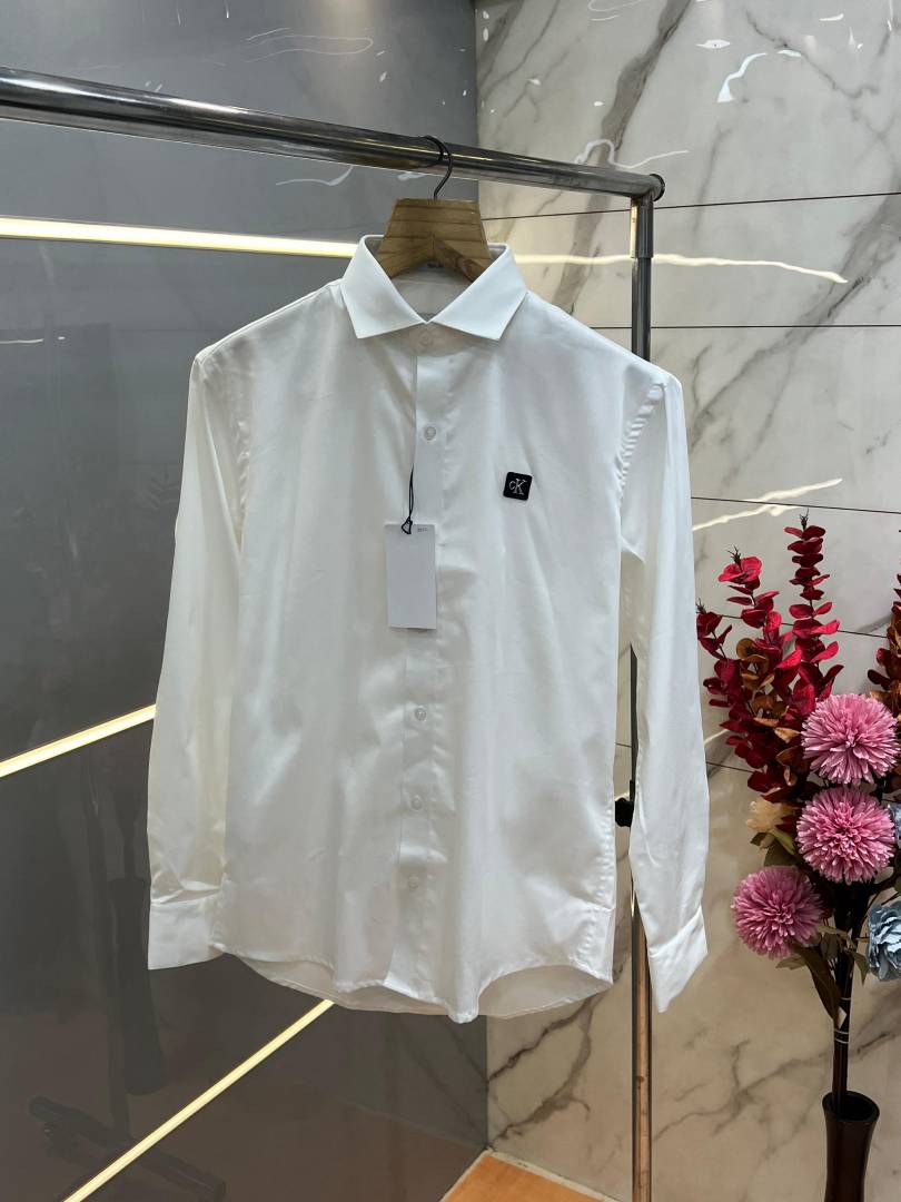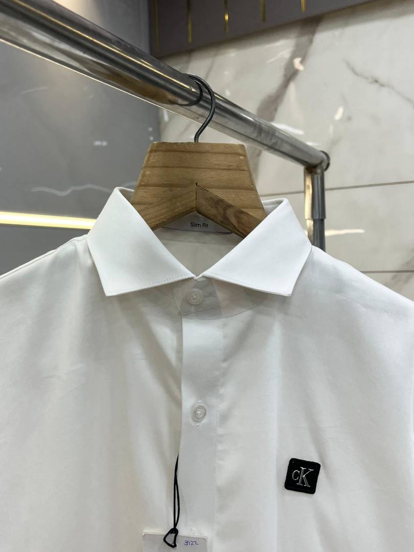 Calvin Klei n White Premium Imported Patch Logo Shirt with custom Branded Button Tagging And Brand Box 3722
