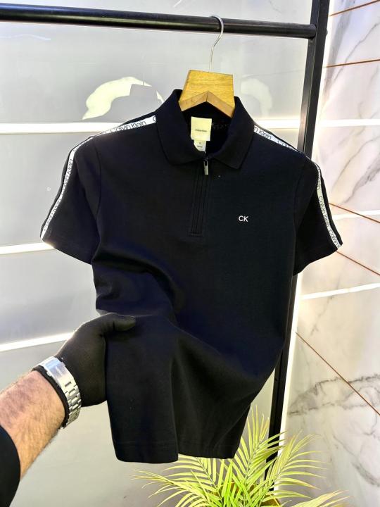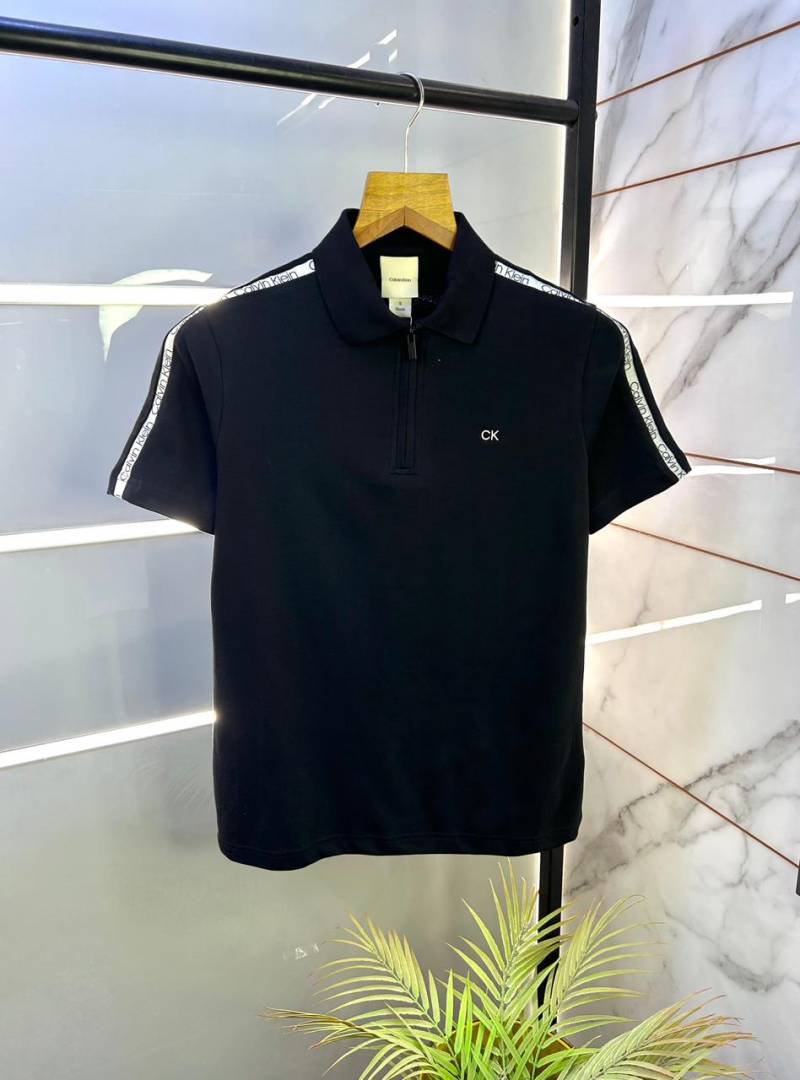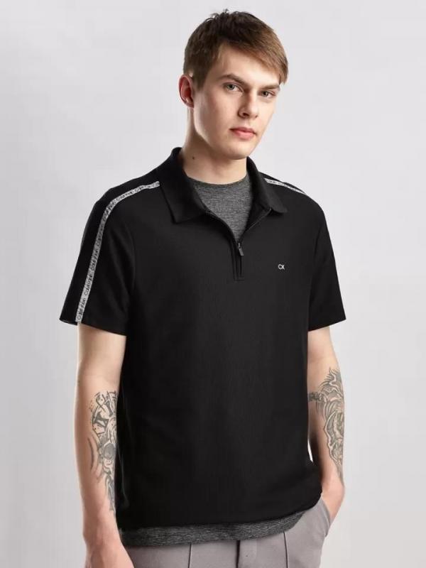 Calvin_Klein Polo Black Zipper Collar Neck Premium T-shirt F3055-BL