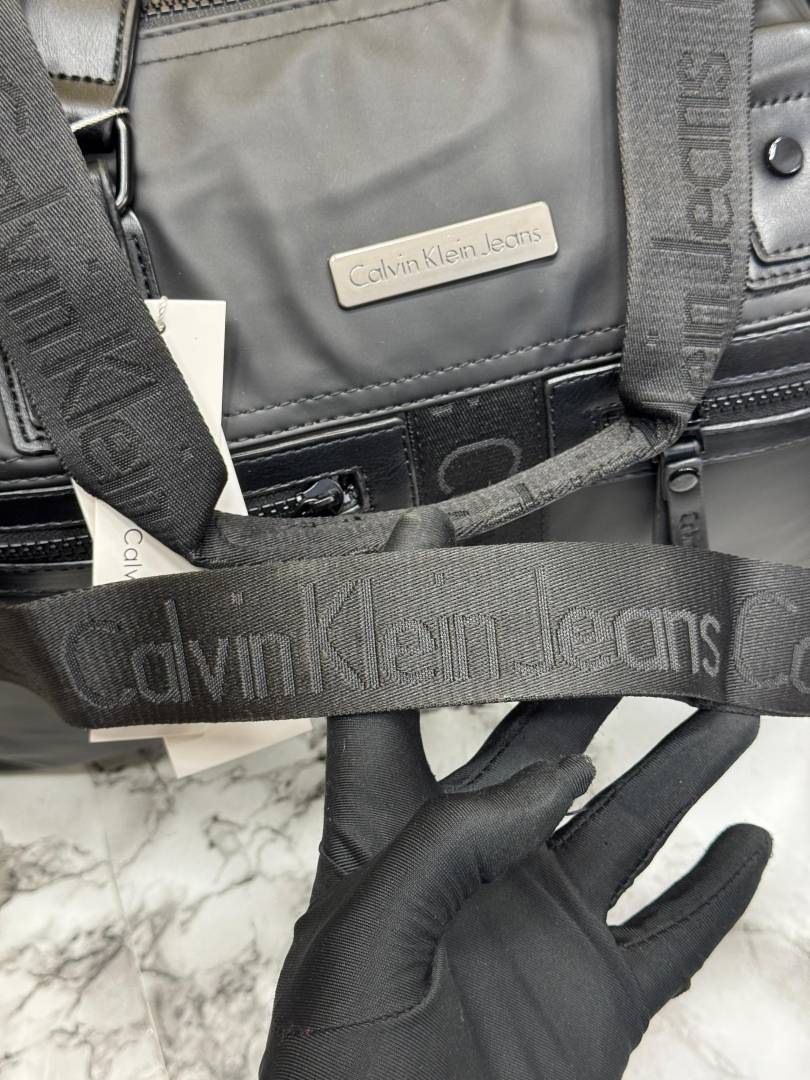 • Calvin_Klein Signature Weekender Carry Ease Compartments Travel Duffle Bag (Black)
