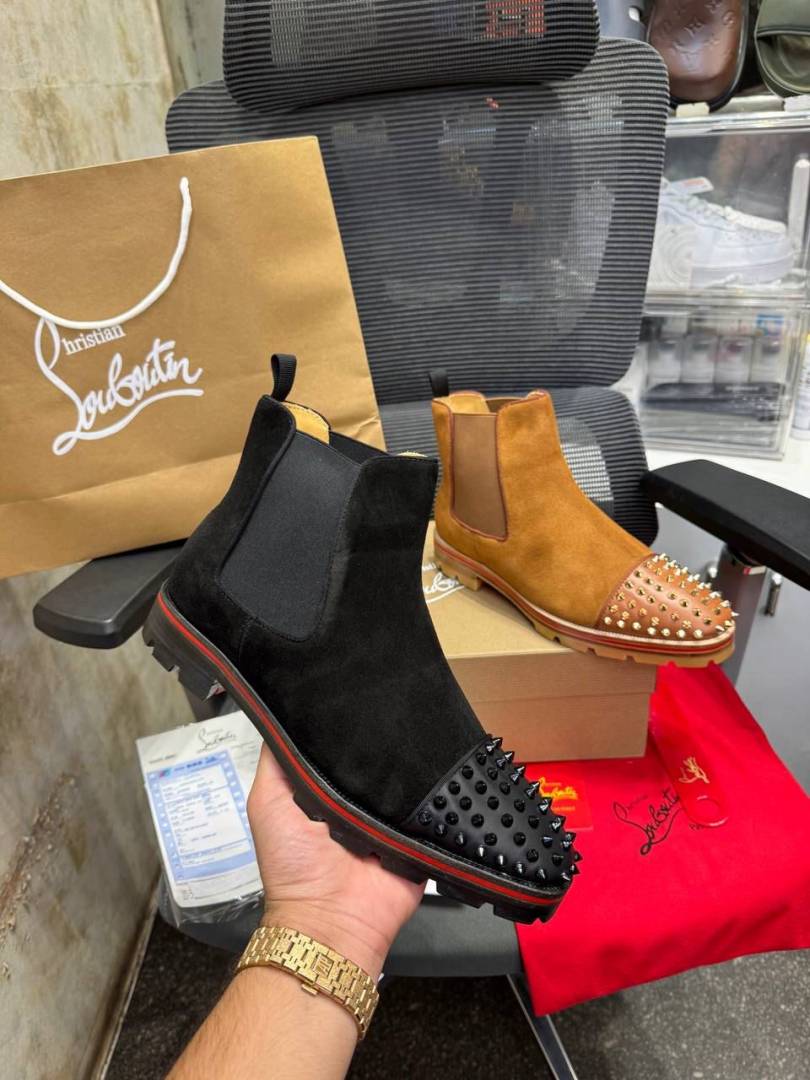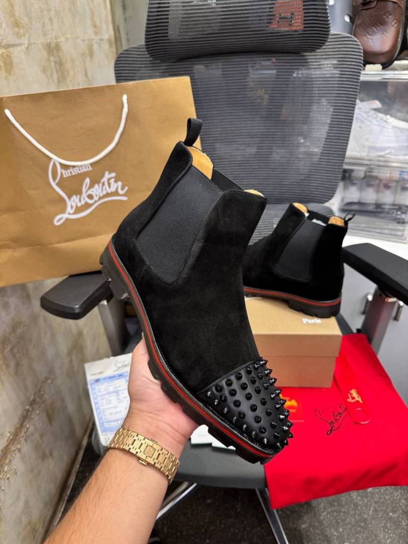 Christian Loubouti.n Spikes Suede Chelsea Boots Black n Premium