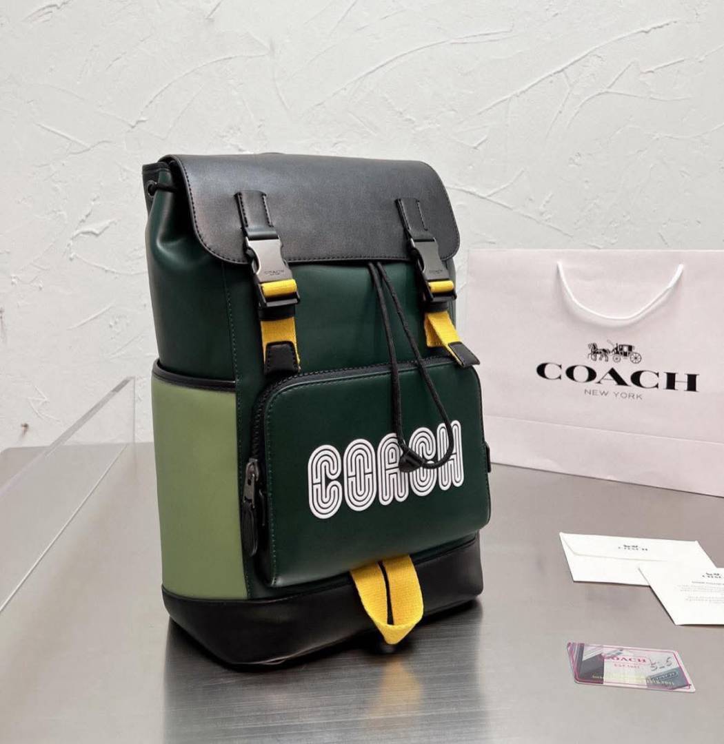 Coach_Track_Backpack_Colorblock_Jungle_Green_Signature_Canvas_&_High_Quality_Leather_With_Dust_Cover_&_Carry_Bag_G69120