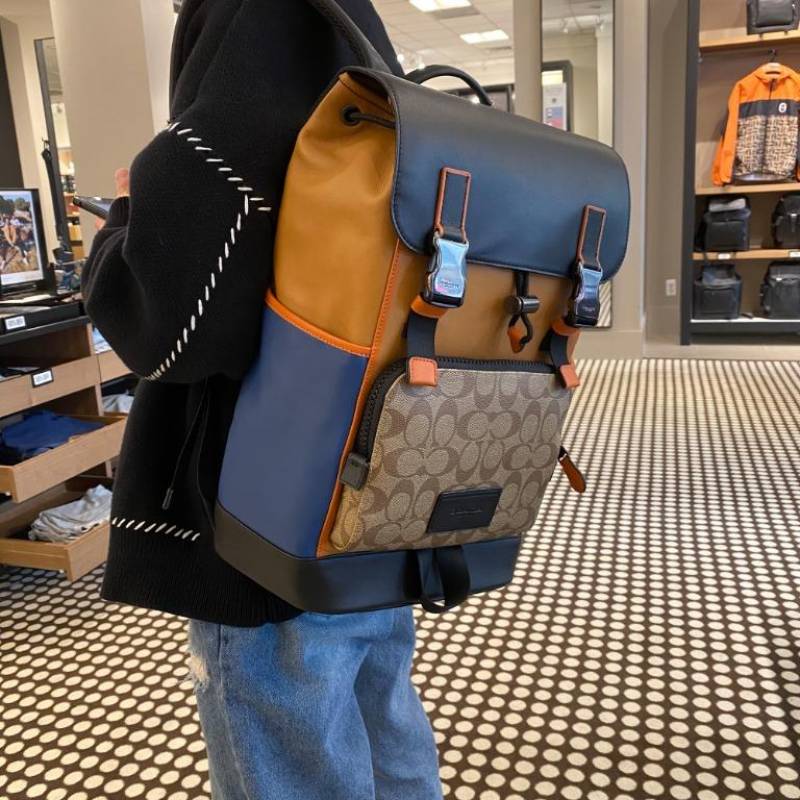 Coach_Track_Backpack_Colorblock_Signature_Canvas_&_High_Quality_Leather_With_Dust_Cover_&_Carry_Bag_O2712