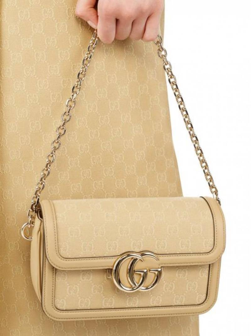 GUCC_I GG CANVAS JACQUARD SHOULDER BAG WITH DOUBLE OG BOX AND DUST BAG (46377-BEIGE)