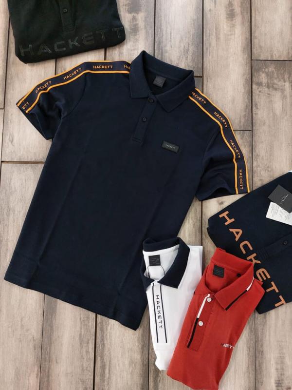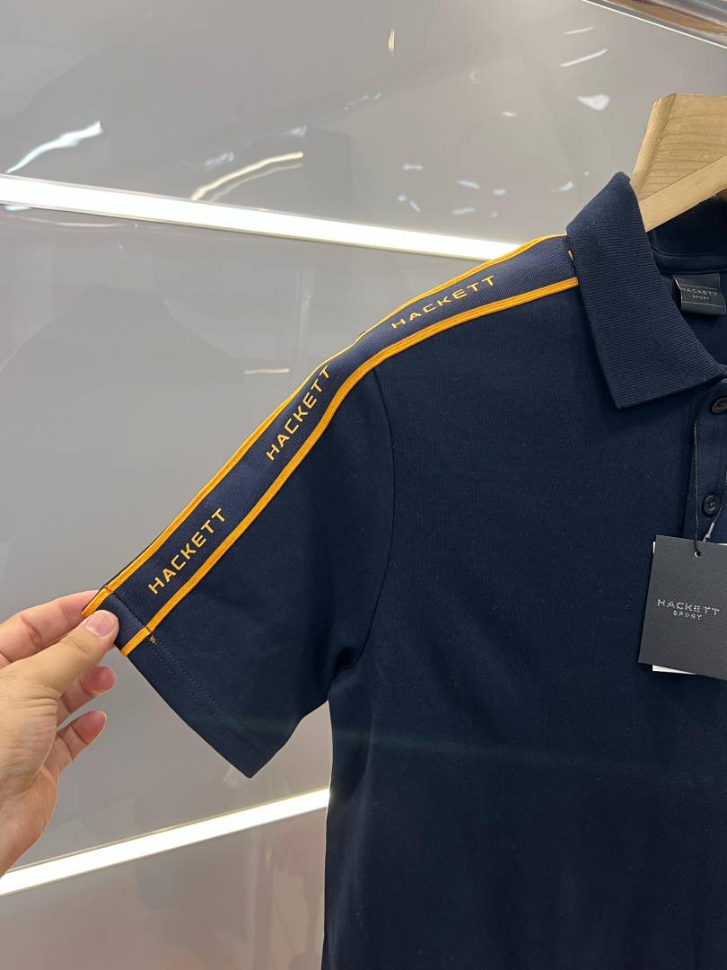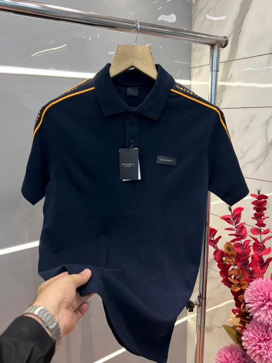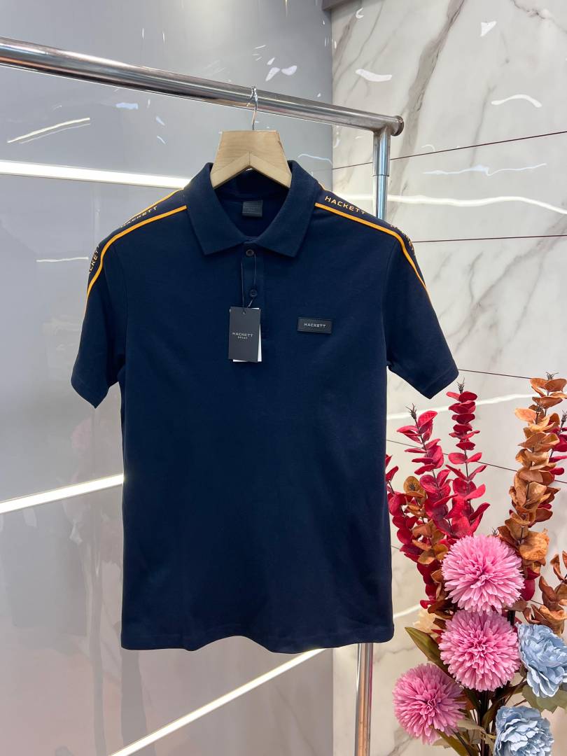 Hacke t Navy Premium 240 gsm interlock compact cotton fabric Polo Tshirt with Shoulder Design and Emboss Logo 3441