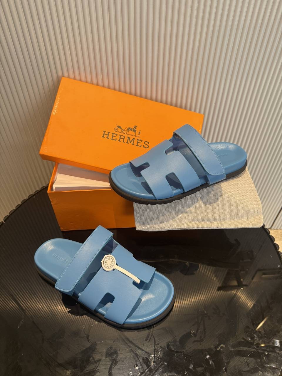 Hermes Chypre Blue Mens Premium Sandal
