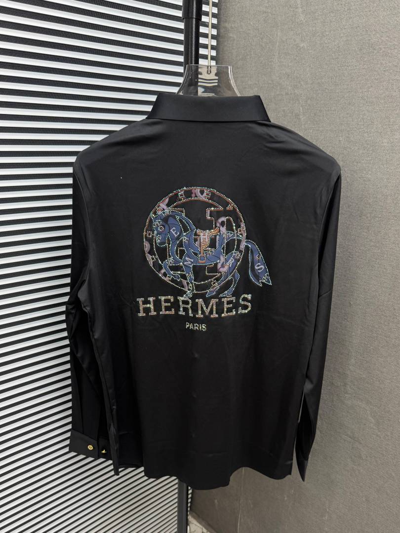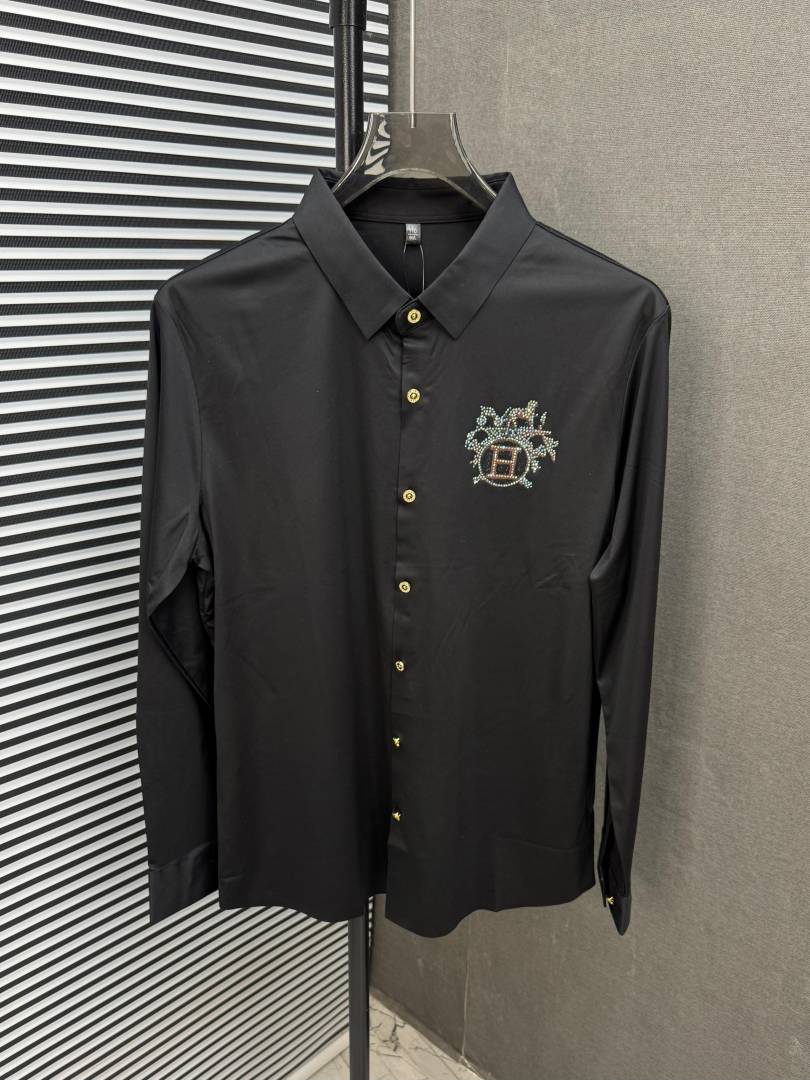 Hermes Paris Black 100% Imported Fabric Latest Store Article Very Premium Stichless Shirt 476