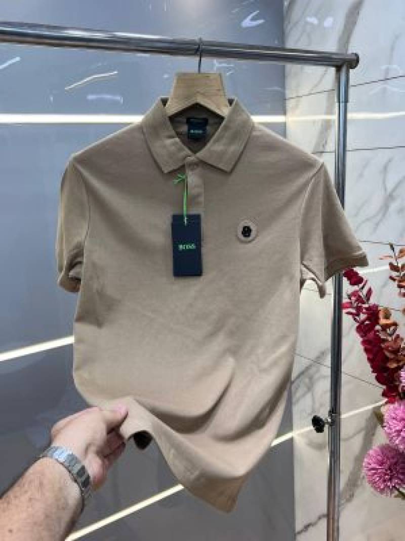 Hugo Bos s Beige Premium 240 gsm interlock compact cotton fabric Polo Tshirt with Patch Logo 3278
