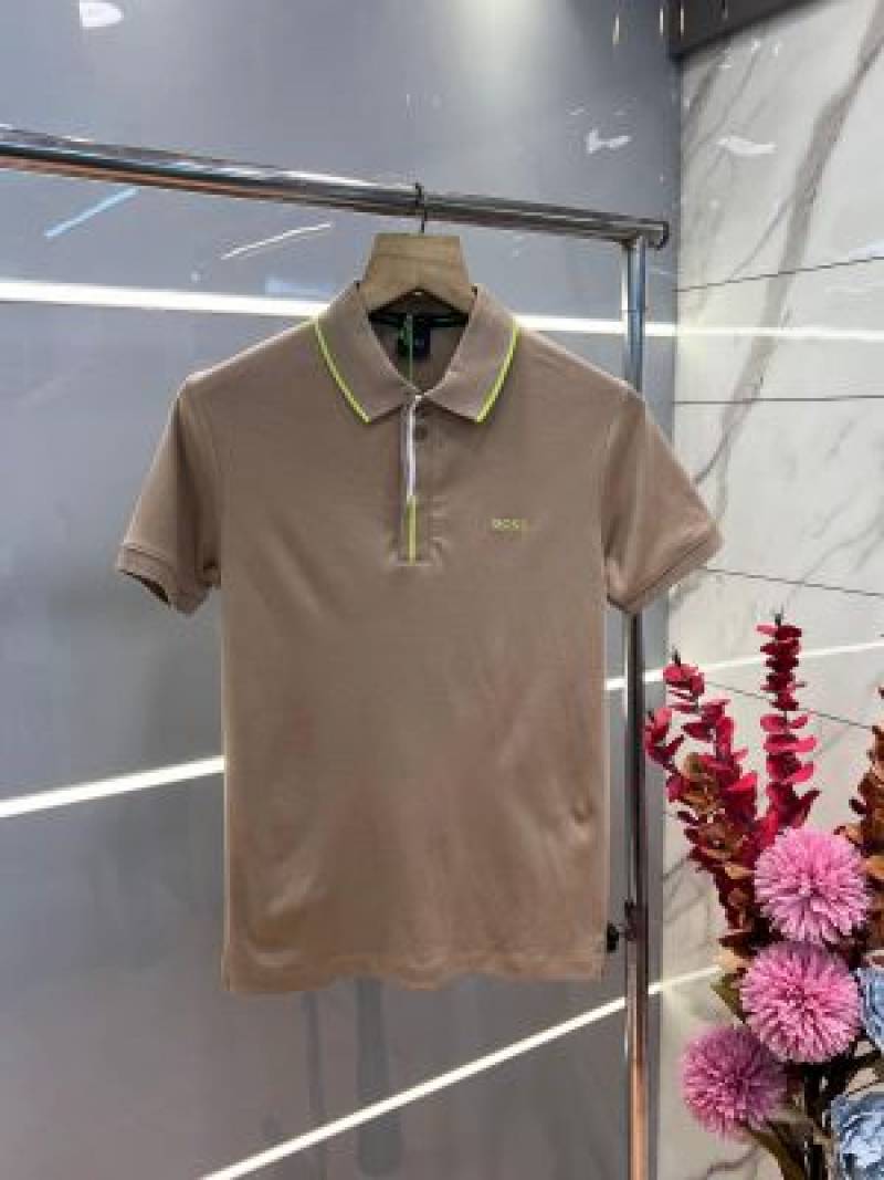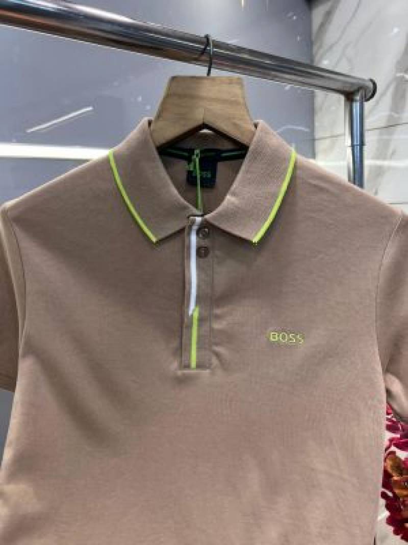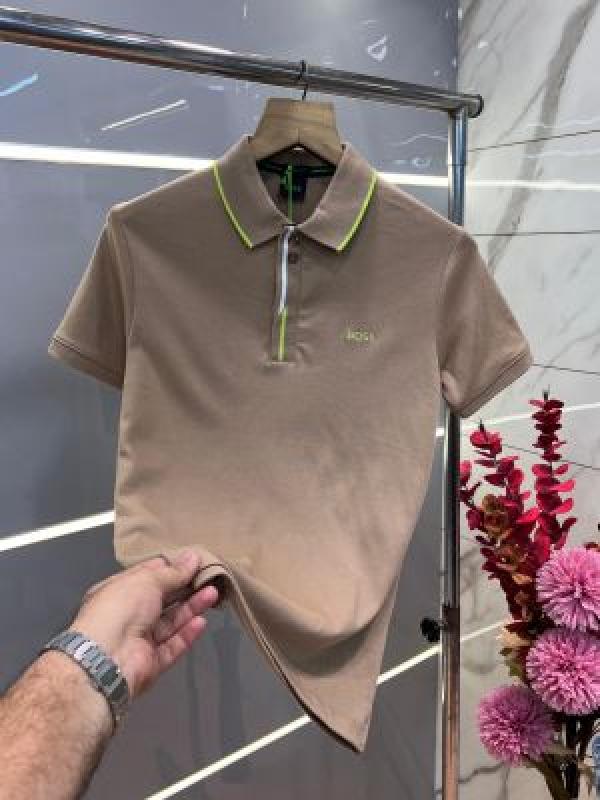 Hugo Bos s Beige Premium Imported 240 GSM Interlock Lycra Fabric Polo Tshirt with Front Design and Emboss Logo 3602