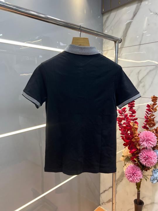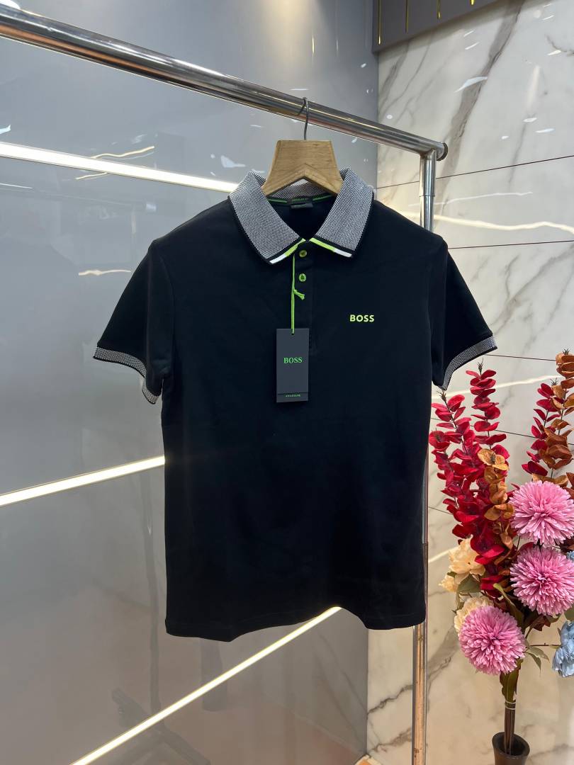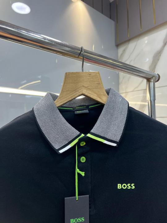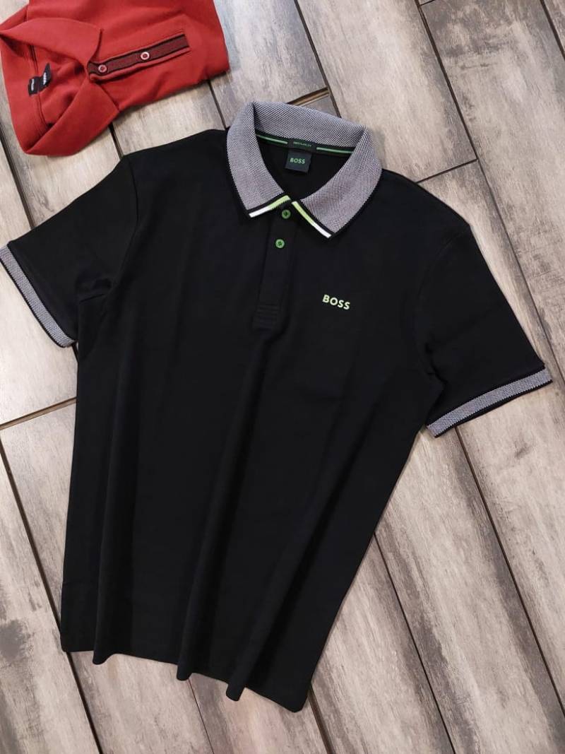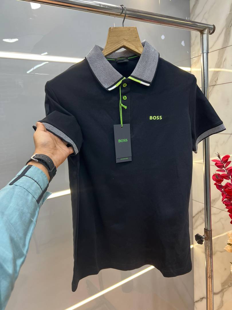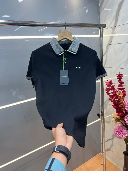 Hugo Bos s Black Premium Imported 240 GSM Interlock Lycra Fabric Polo Tshirt with Collar Design and Emboss Logo 4077
