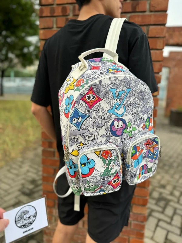 Louis_Vuitton_LV_M60206_Character_Premium_Unisex_Backpack_With_Dust_Cover_(White)