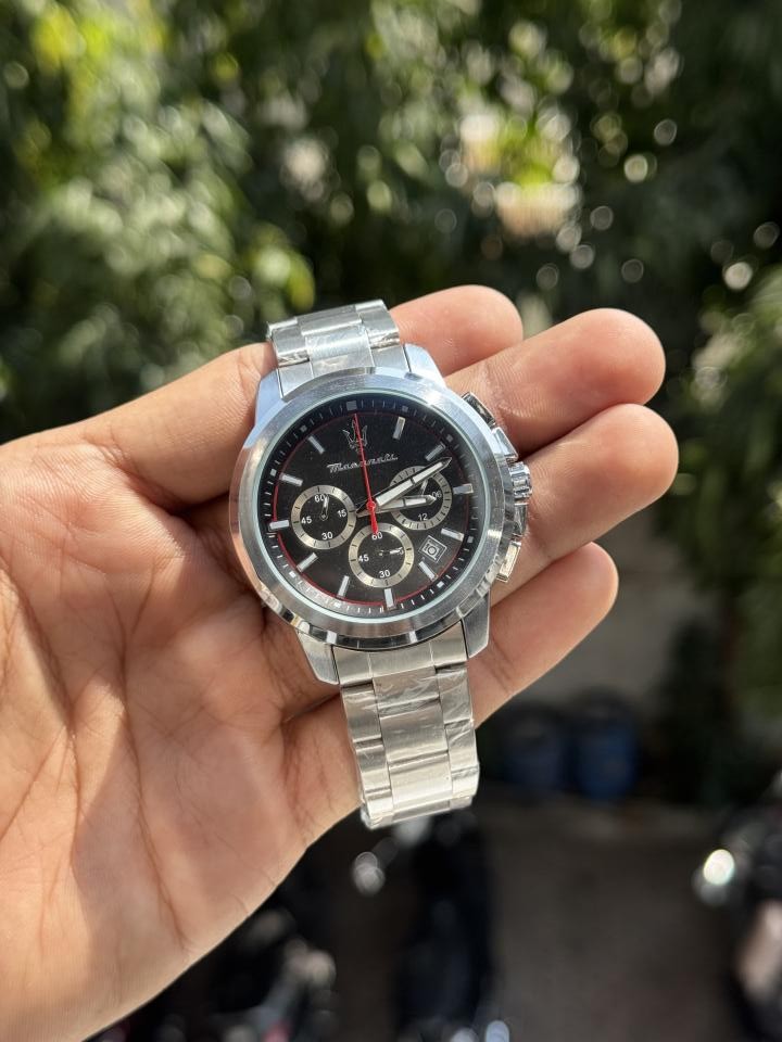 Maserati Metal Silver Black Dial Chronograph Watch