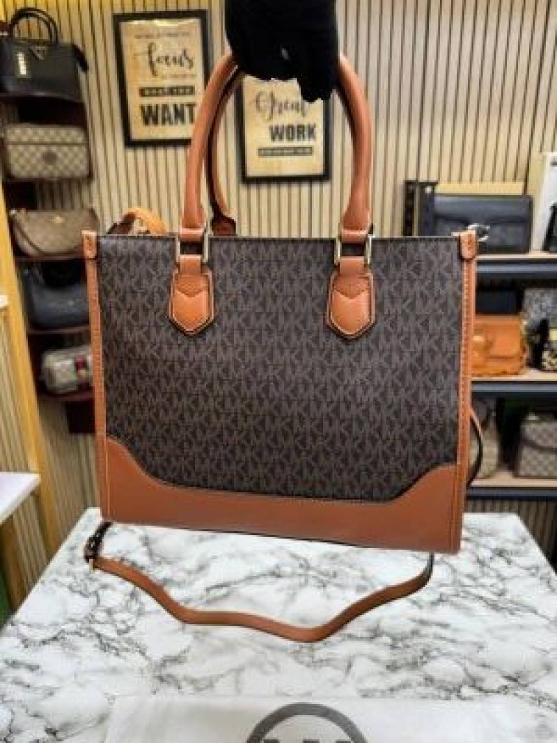 Michael_Kors Sheila Satchel Bag With Dust Bag (23015-Brown)