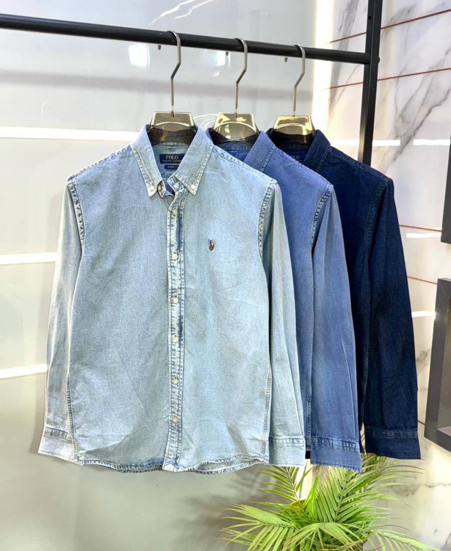 Ralp h Lauren Embroidery Logo Mid Blue Super Premium Denim Shirts F2548-MB