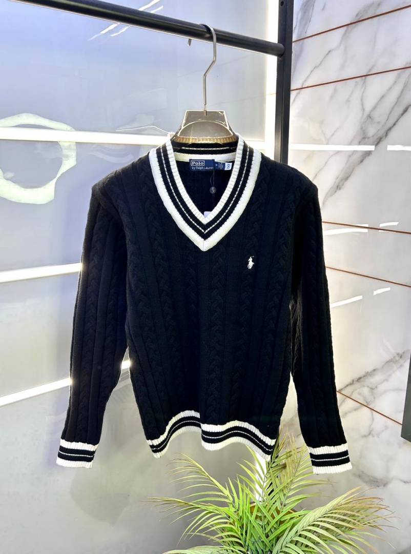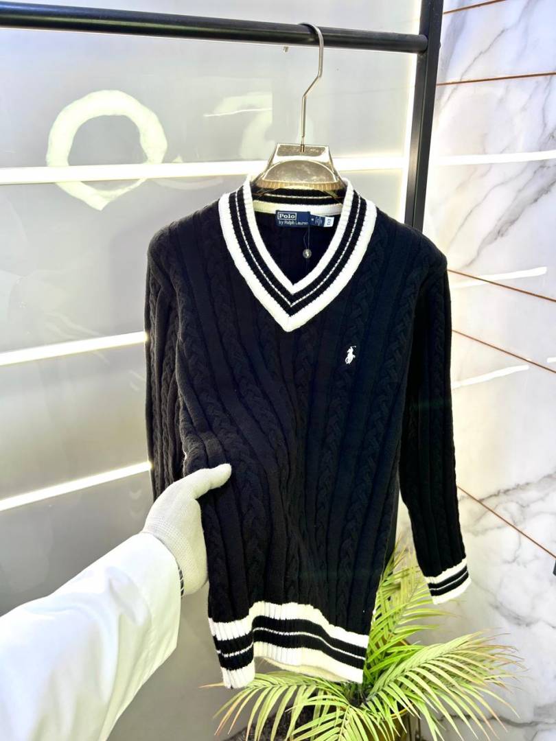 Ralph_Lauren Black Imported knitted V Neck Super Premium Pullovers F3261-BL