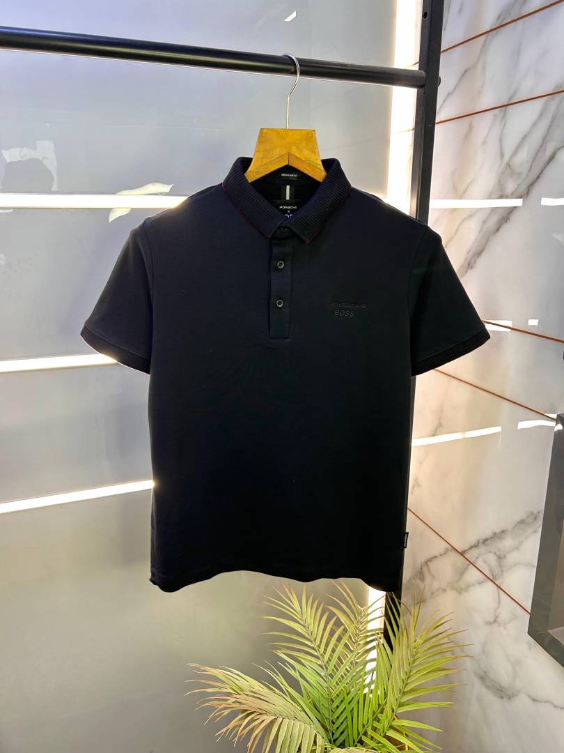Sale Boss x Porsche Edition Black Collar Neck Premium Polo T-shirt F2463-BL