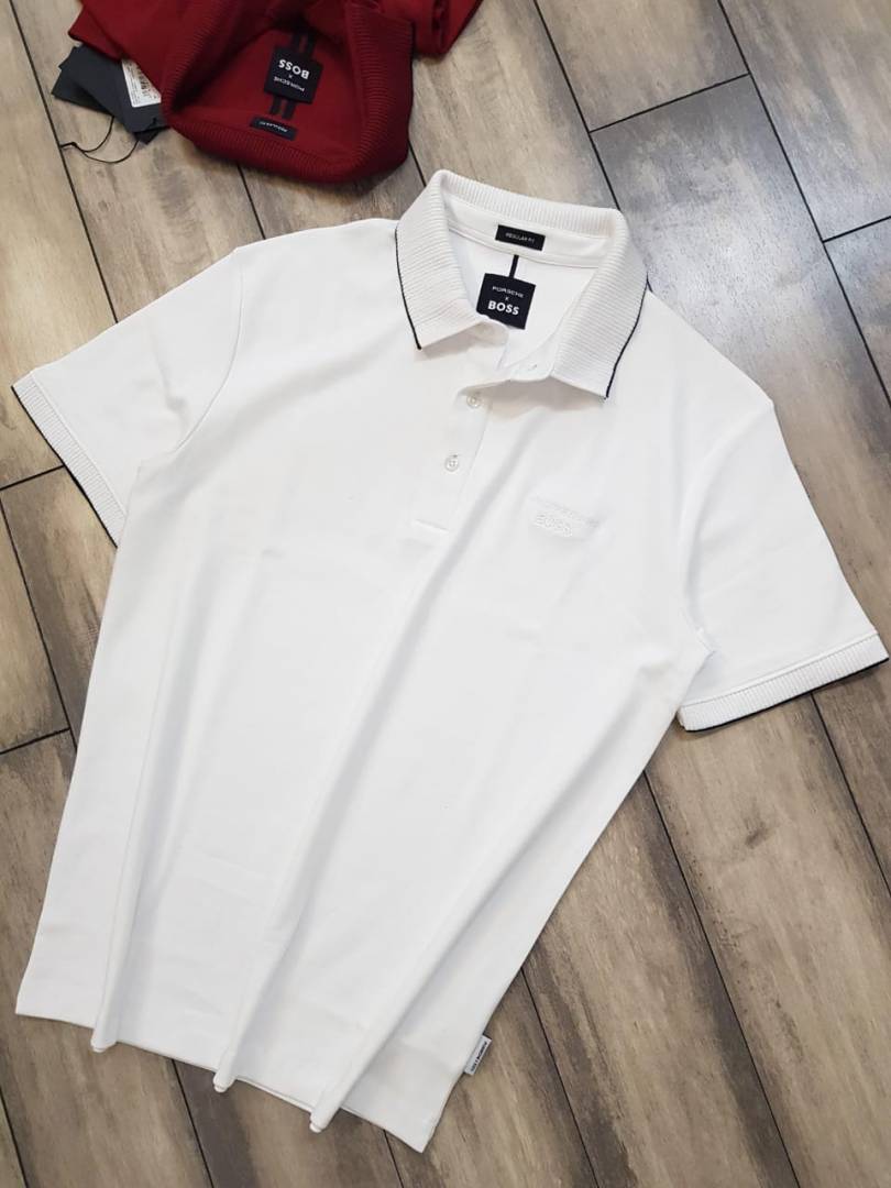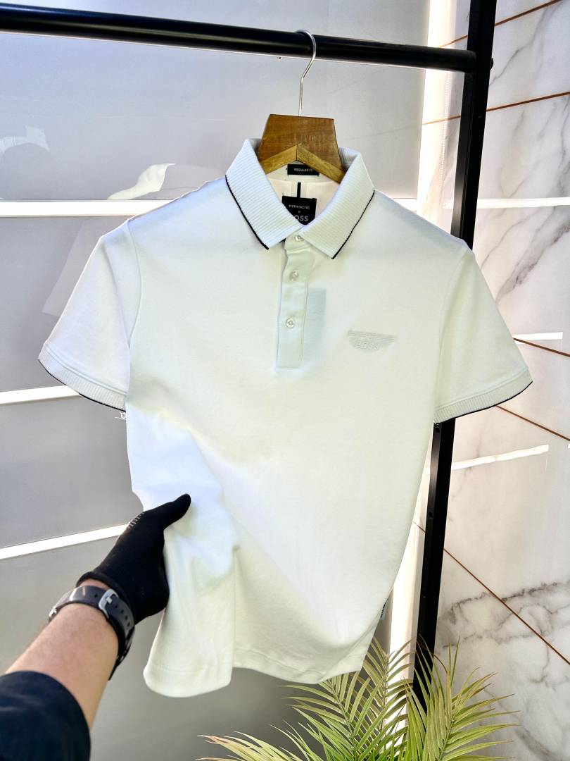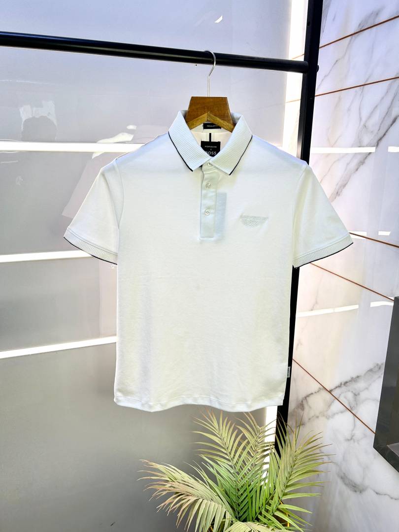Sale Boss x Porsche Edition White Collar Neck Premium Polo T-shirt F2463-WH