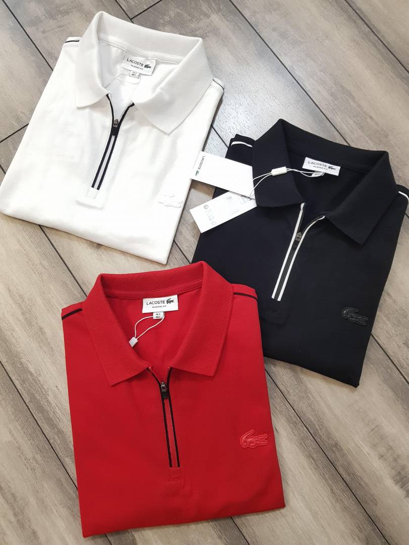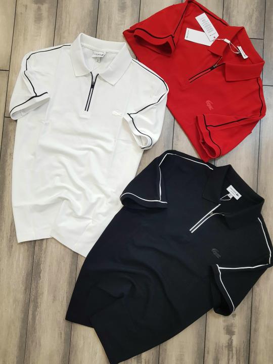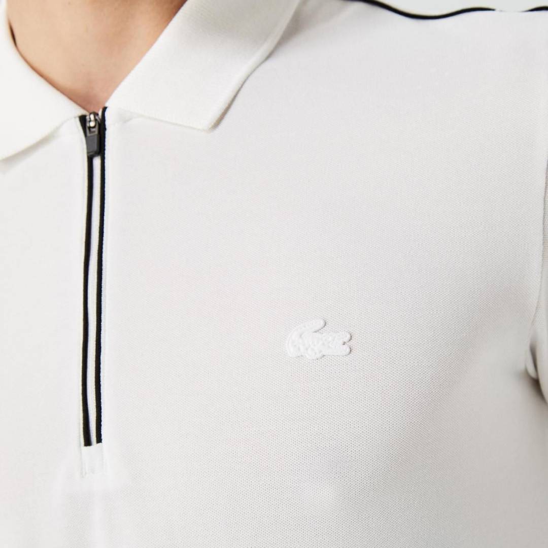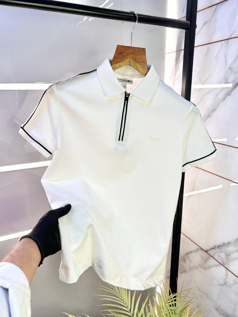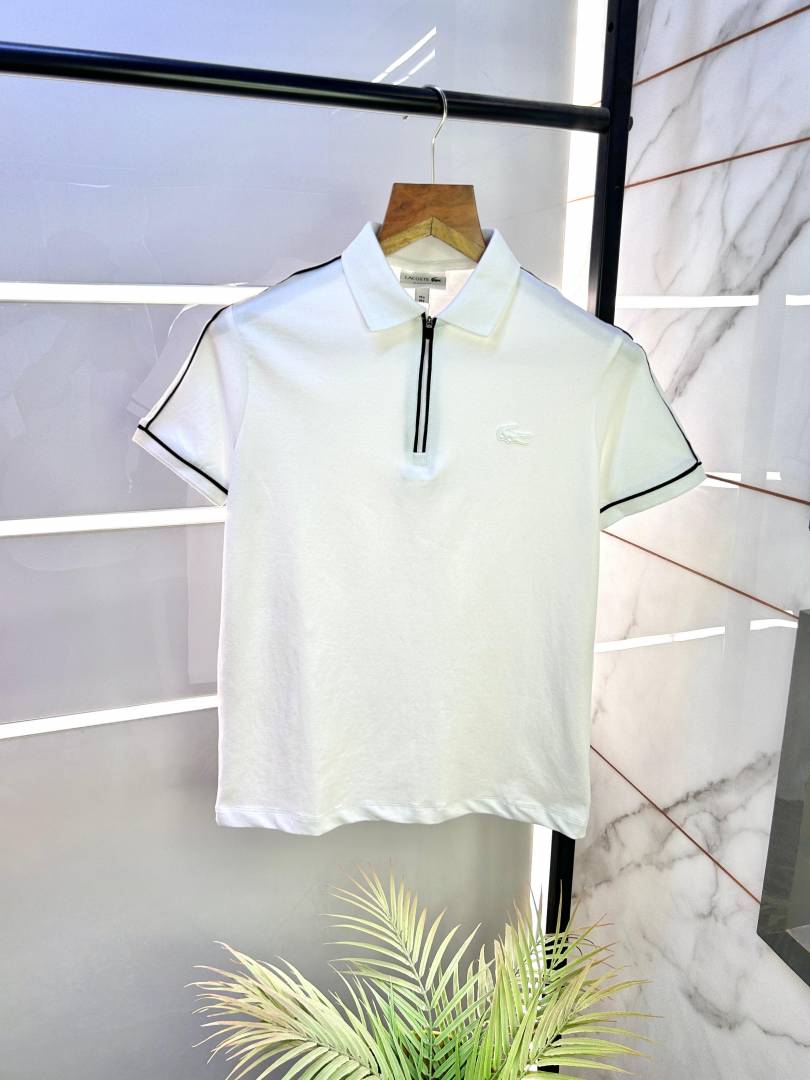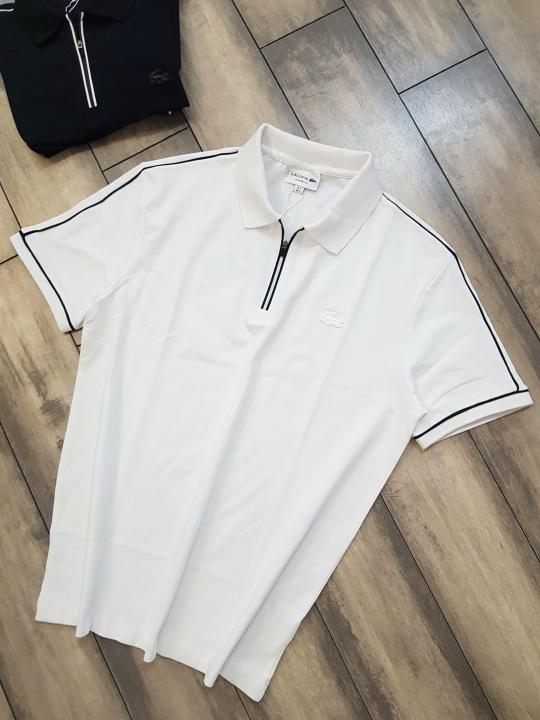 Sale Lacost e White Zipper Collar Neck Premium Polo T-shirt F2357-WH