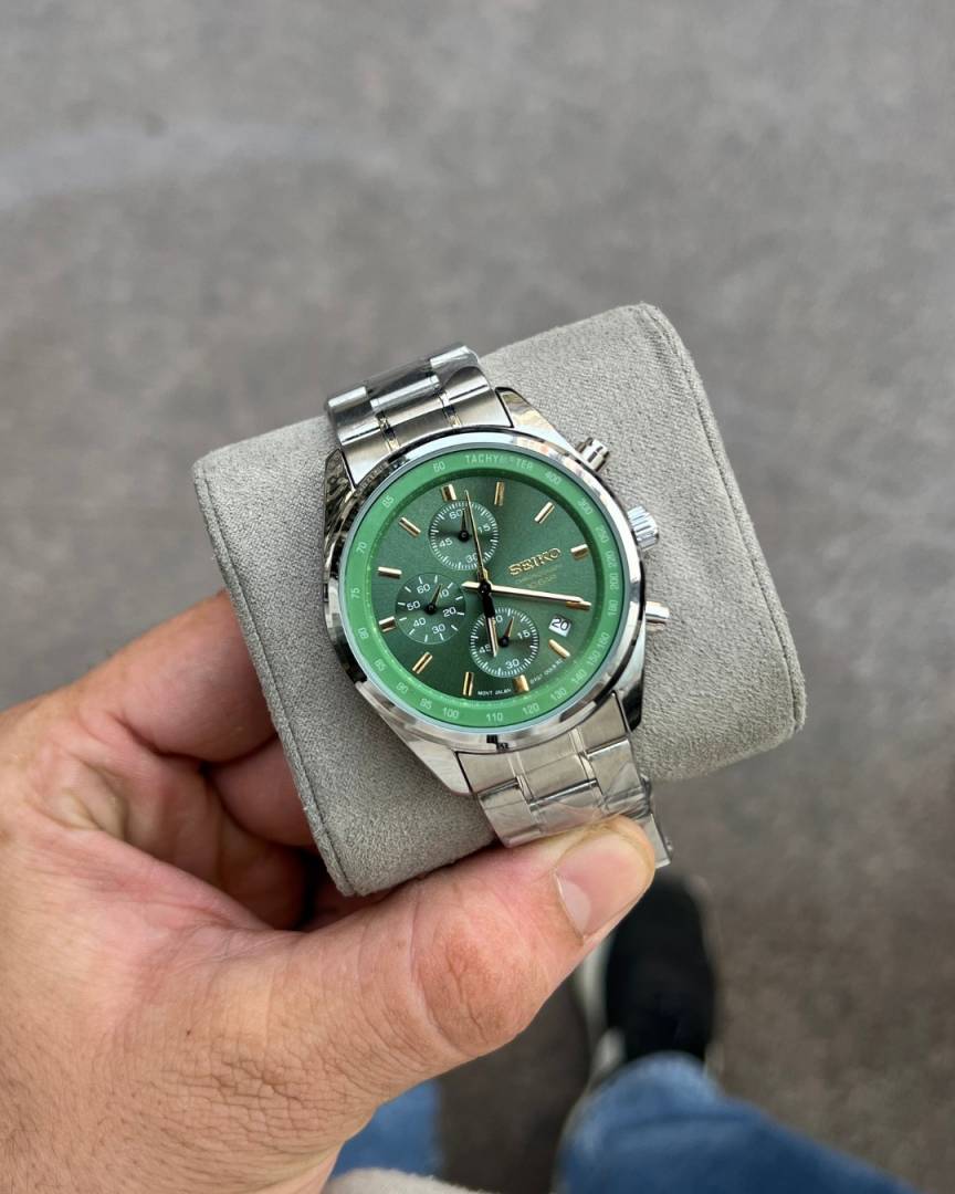 Seiko Chronograph 10 Bar SSB377P1 Silver Green