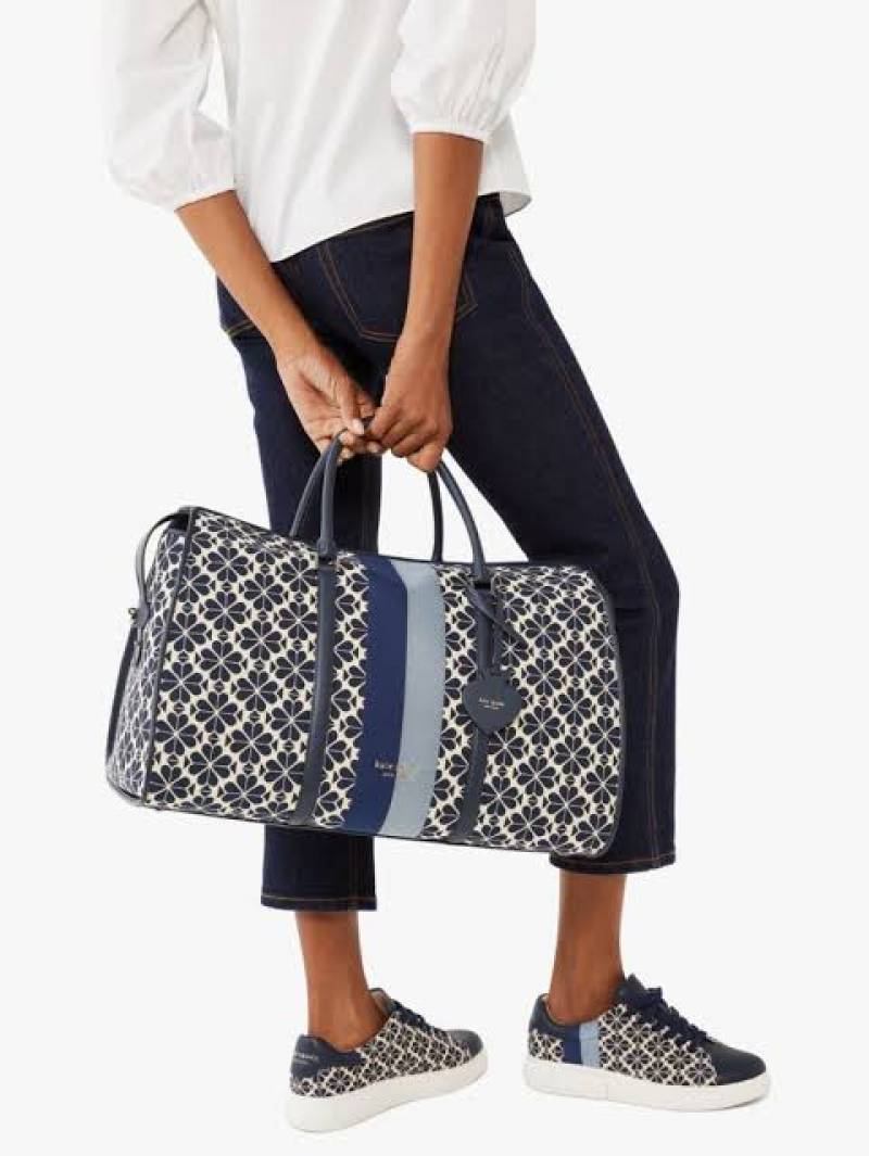 THE KATE SPADE BLUE NEW YORK FLOWER JAQUARD PREMIUM CLASSIC DUFFLE BAG