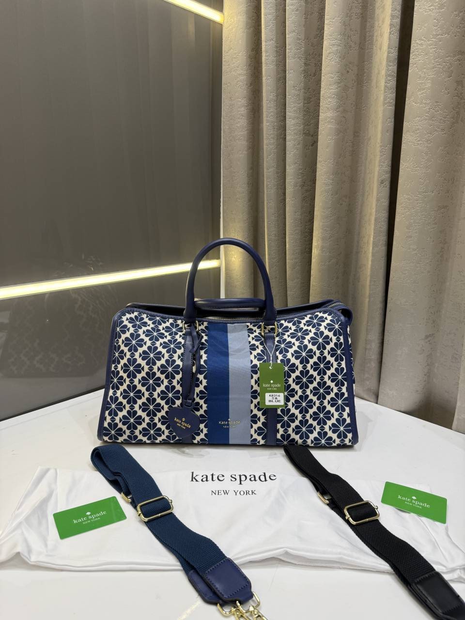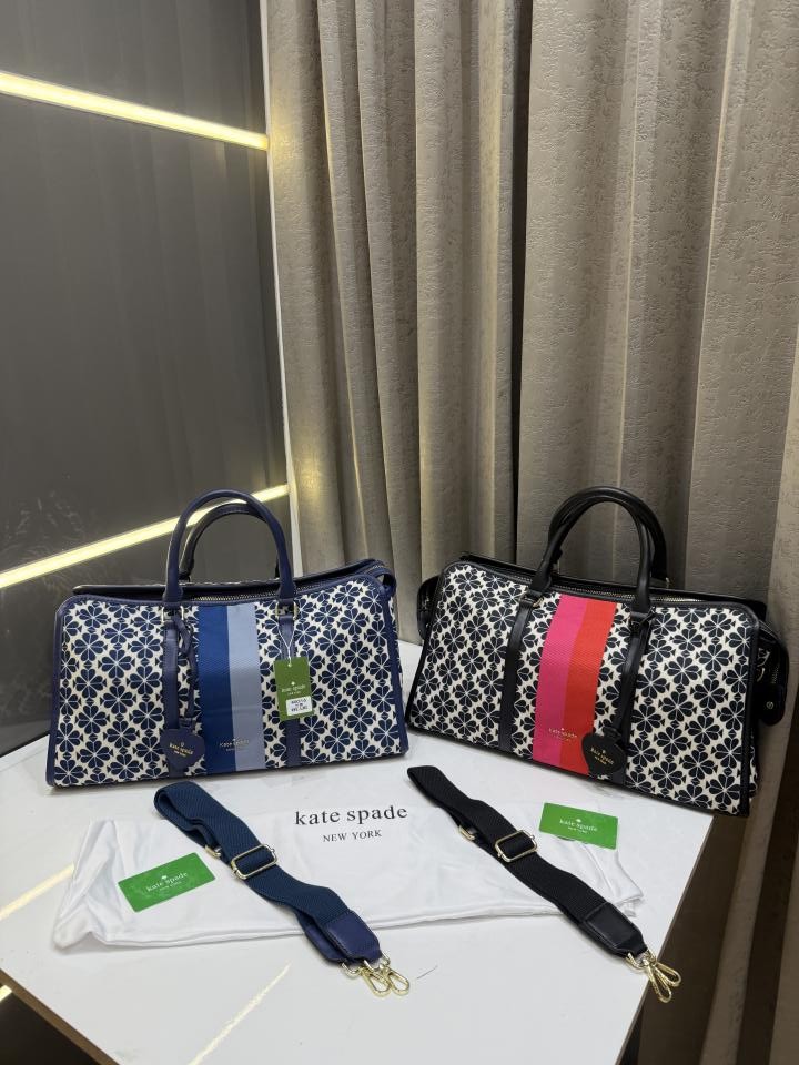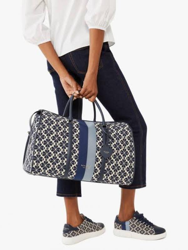 • THE KATE SPADE BLUE NEW YORK FLOWER JAQUARD PREMIUM CLASSIC DUFFLE BAG