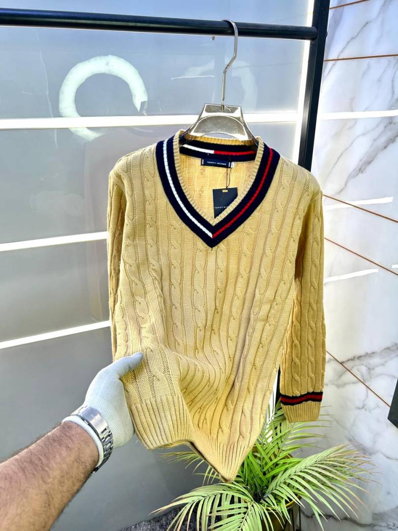 Tommy_Hilfiger Imported White knitted V Neck Super Premium Pullovers F3238-WH