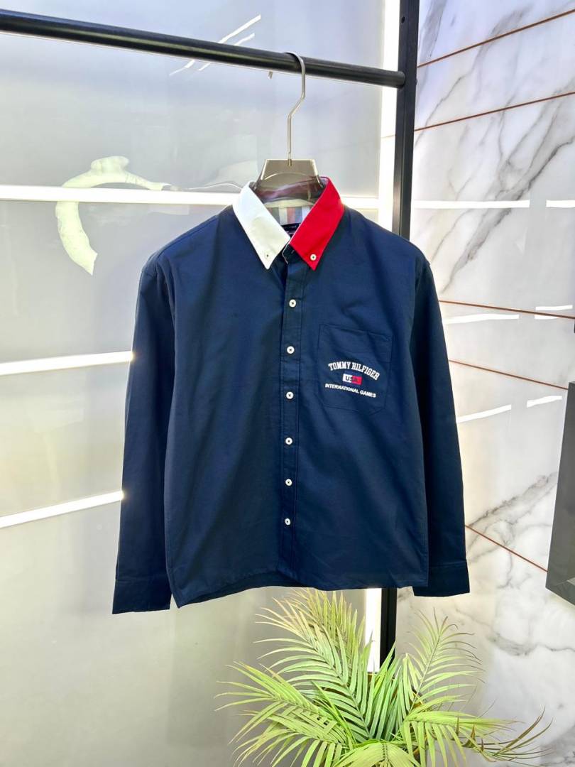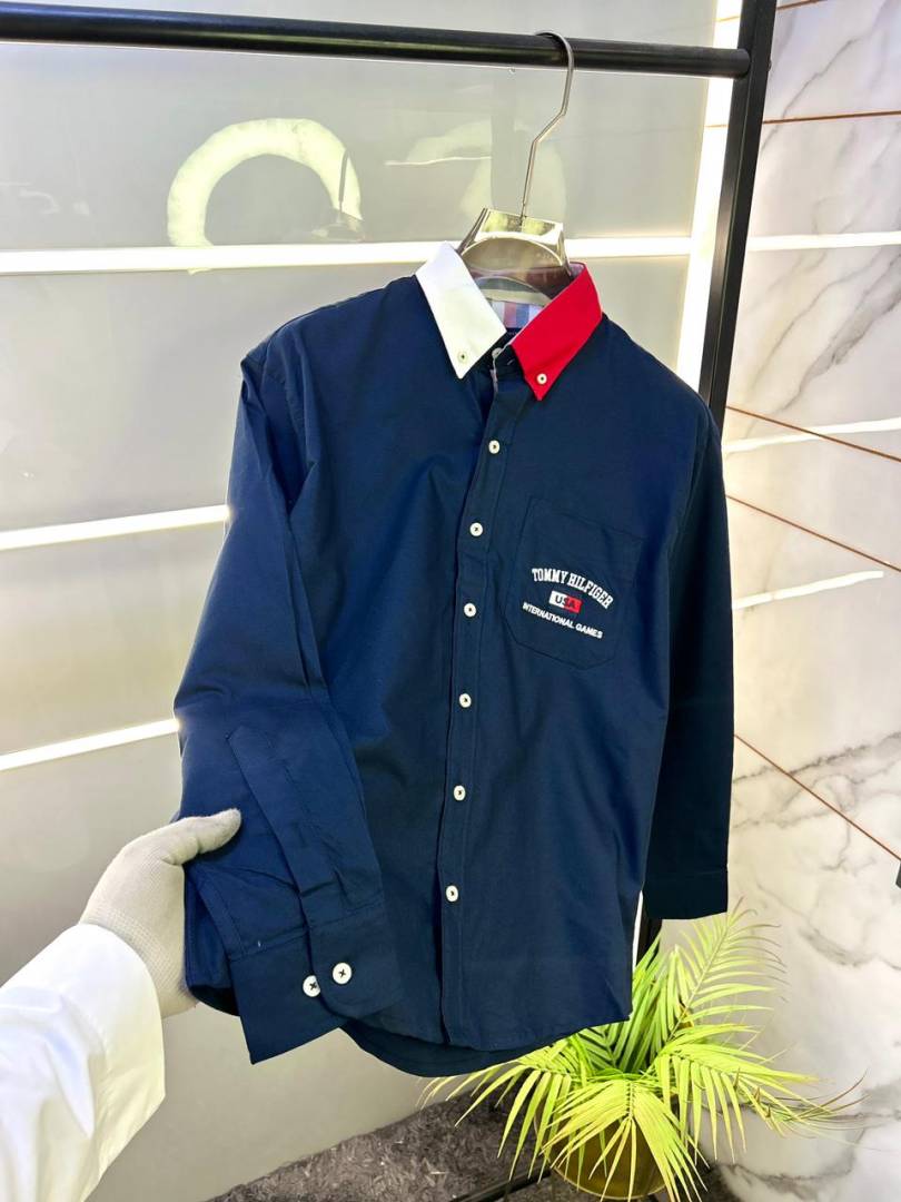 Tommy_Hilfiger Navy Oxford Lycra Premium Printed Shirts F3343-NY