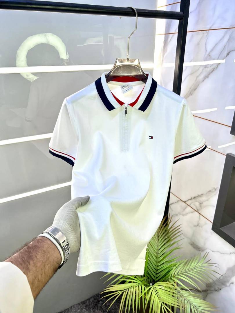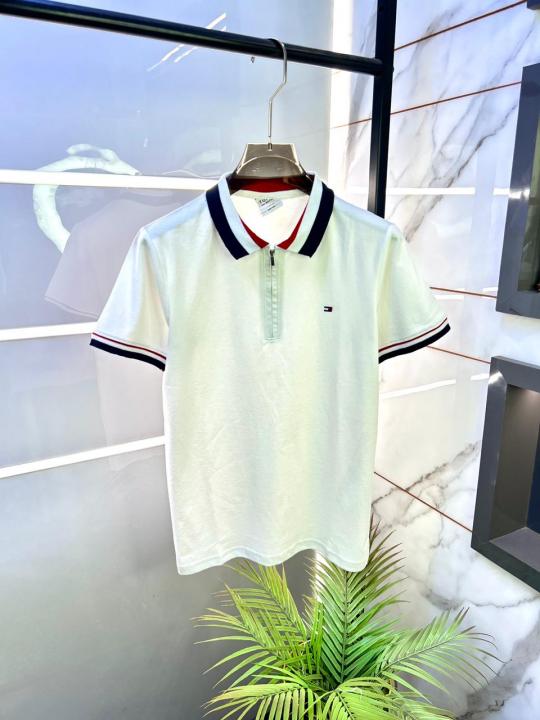 Tommy_Hilfiger White Zipper Polo Premium Collar Neck T-shirt F2820-WH