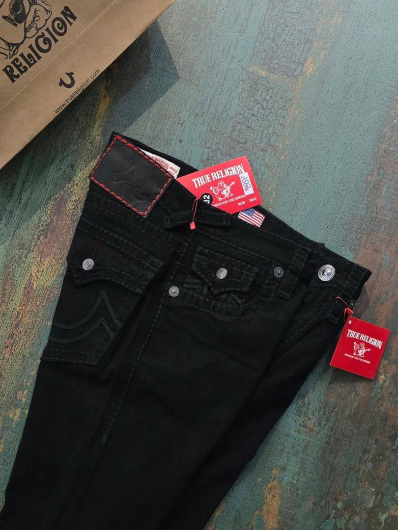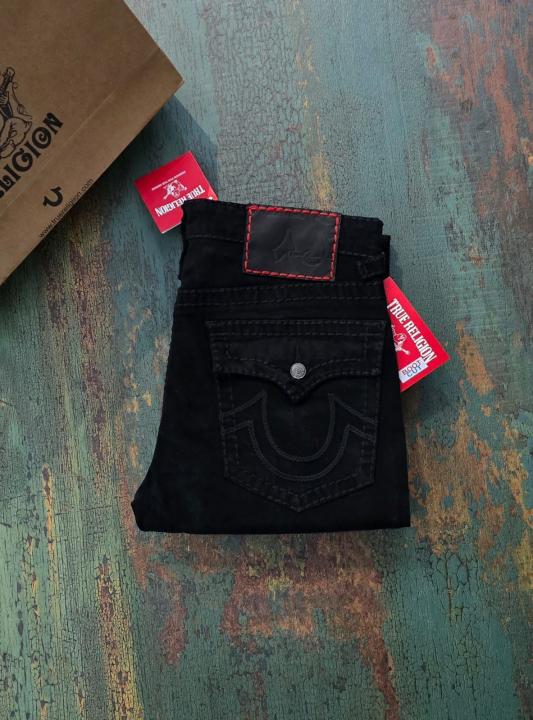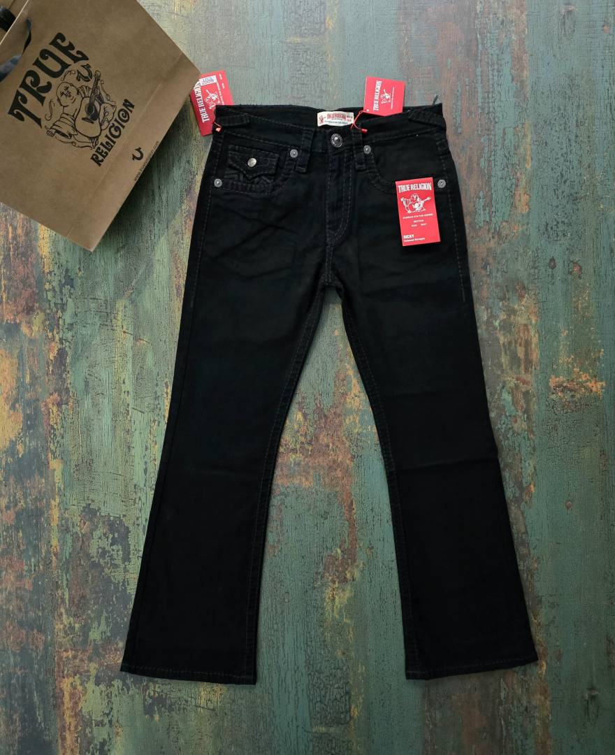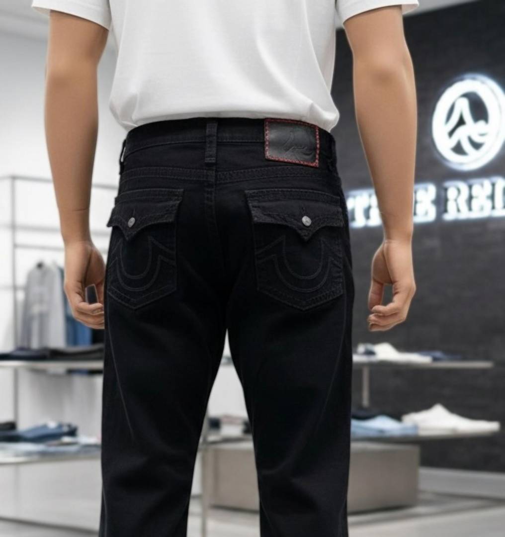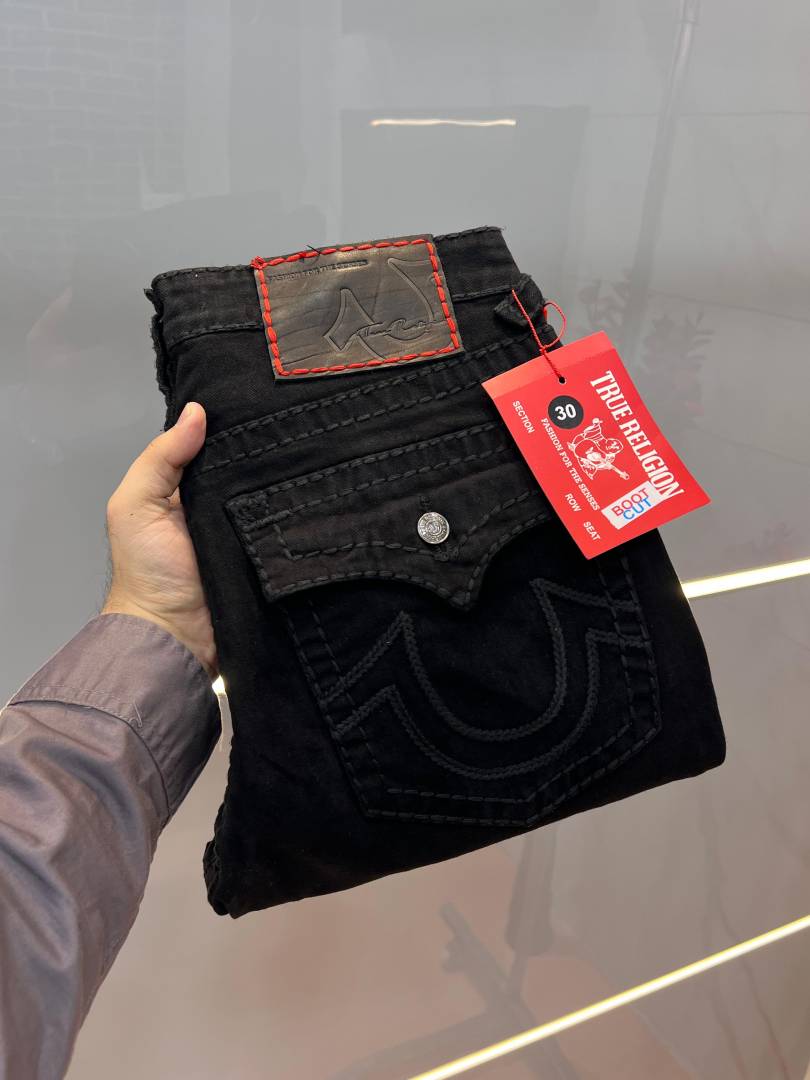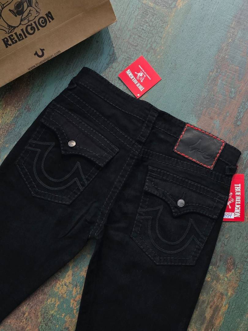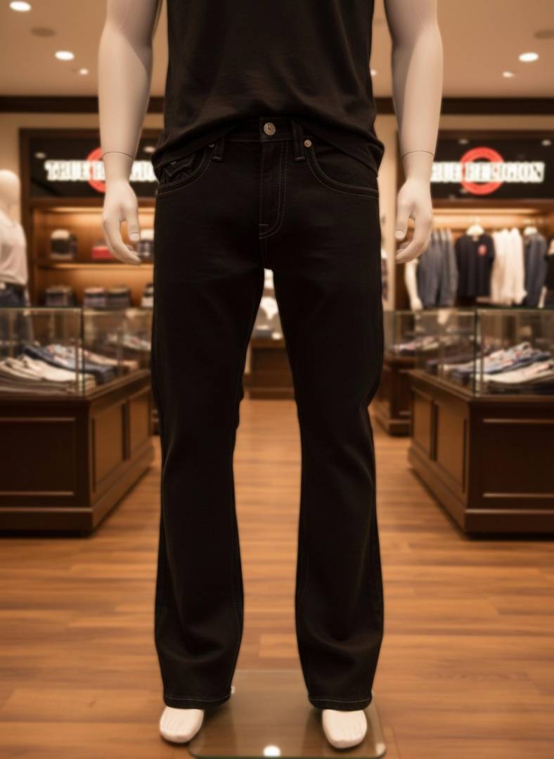 True Religio n Jet Black Premium Imported Stretchable Lycra Fabric Boot Cut Denim with Back Flap pocket Design 3340