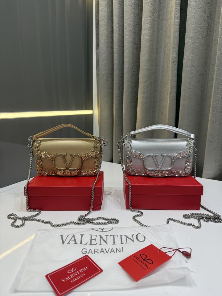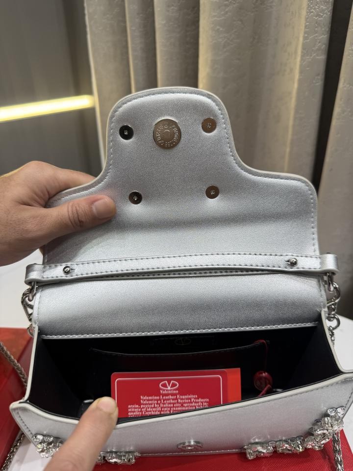 • VALENTIN.O GARAVANI SILVER CRYSTAL EMBELLISHMENT LOCO SMALL SHOUDER BAG WITH OG BOX