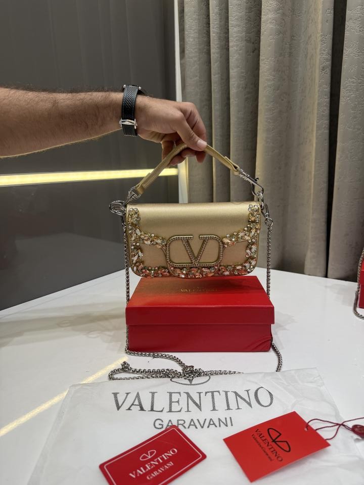 • VALENTIN.O GARAVANI GOLD CRYSTAL EMBELLISHMENT LOCO SMALL SHOUDER BAG WITH OG BOX
