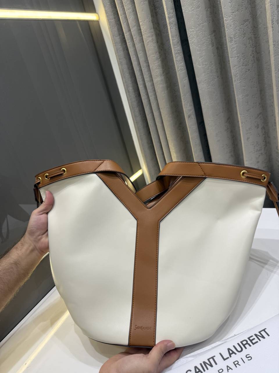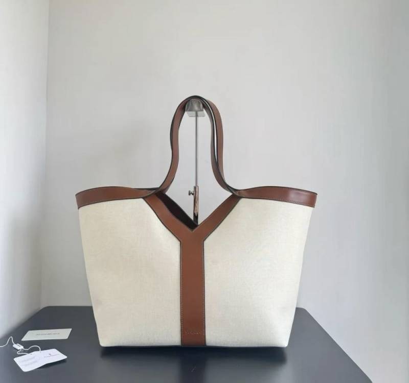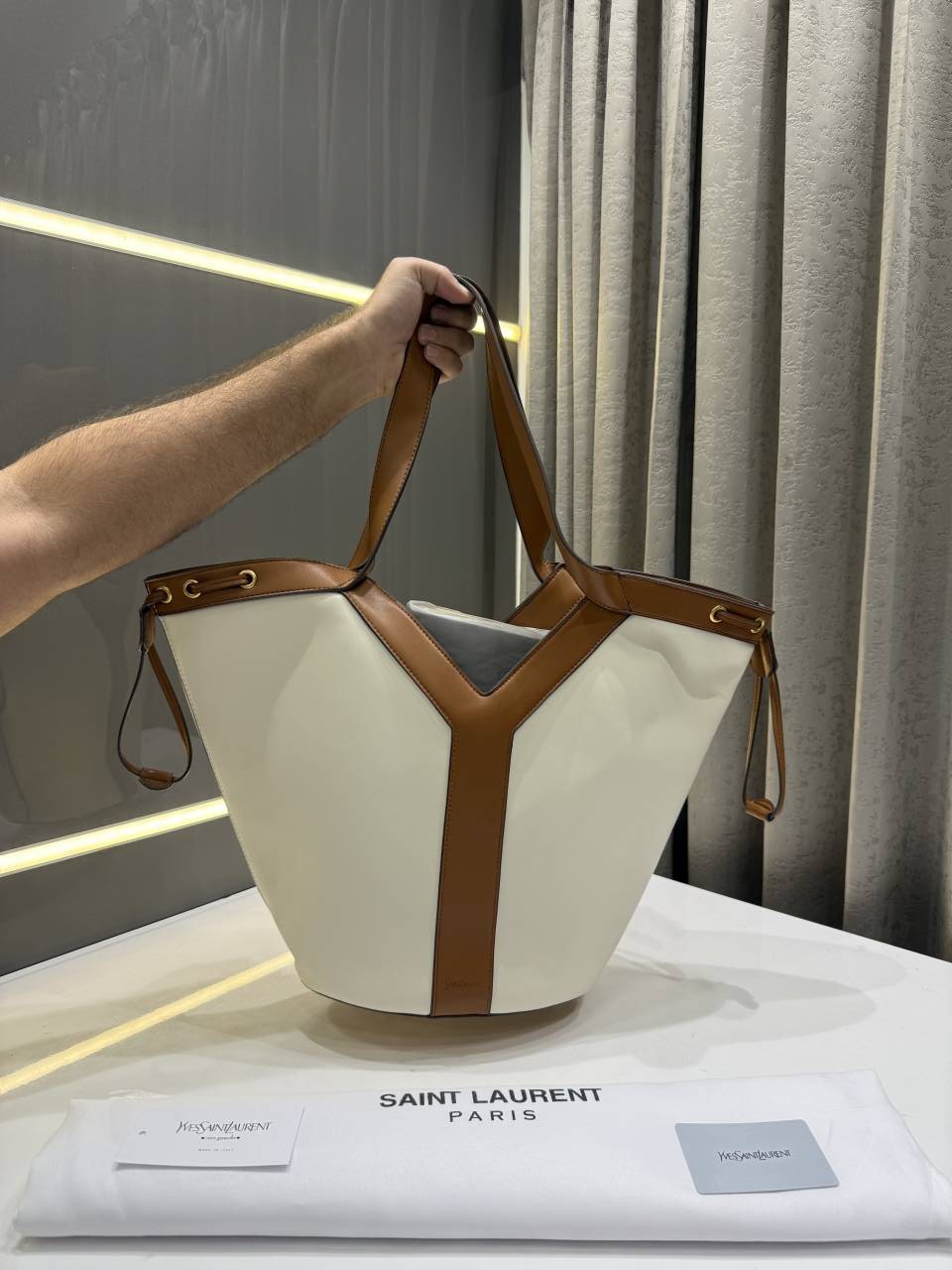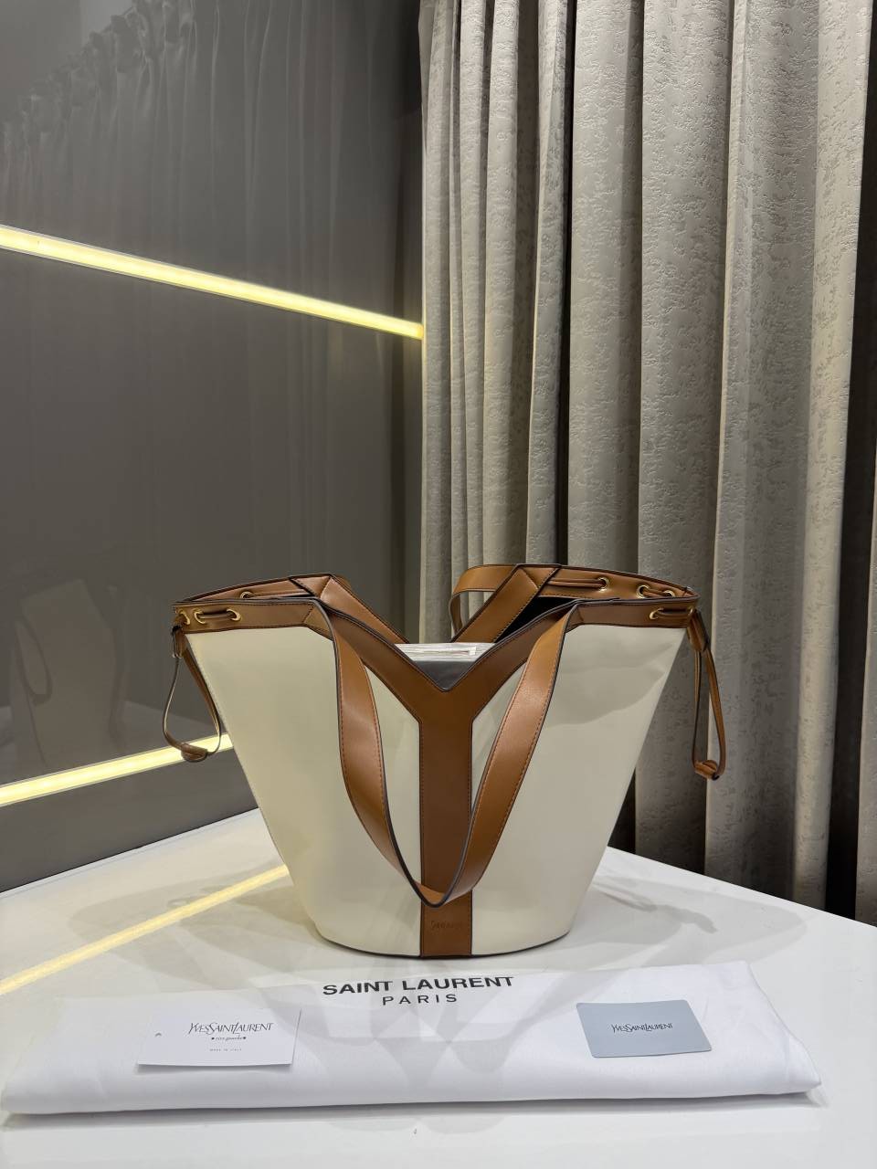 YVES SAINT LAURENT Y TOTE BAG BEIGE&BROWN WITH DUST BAG